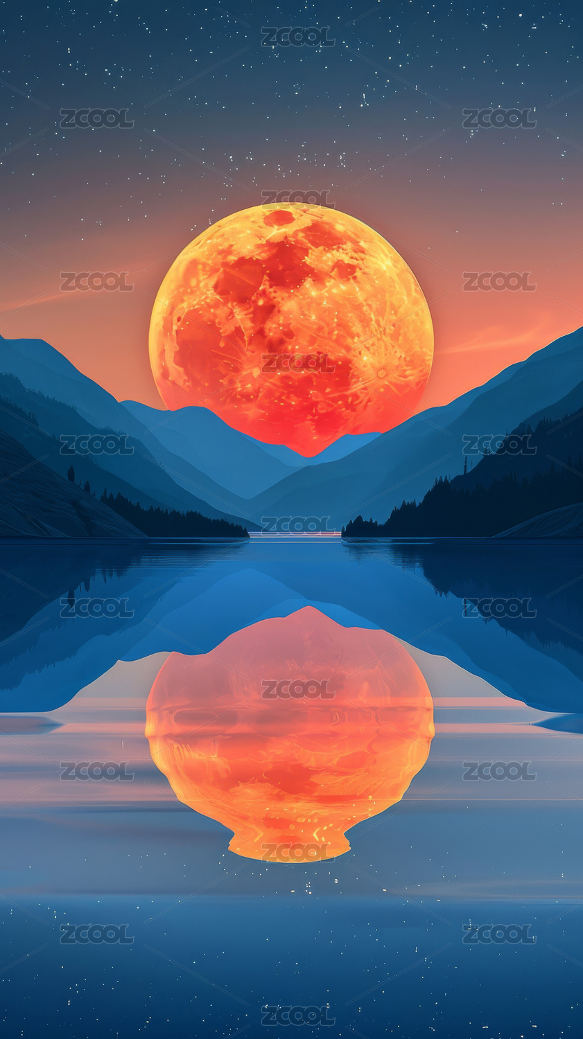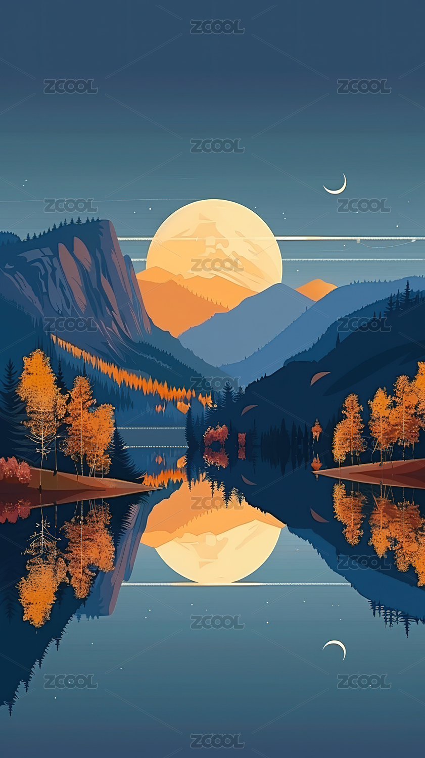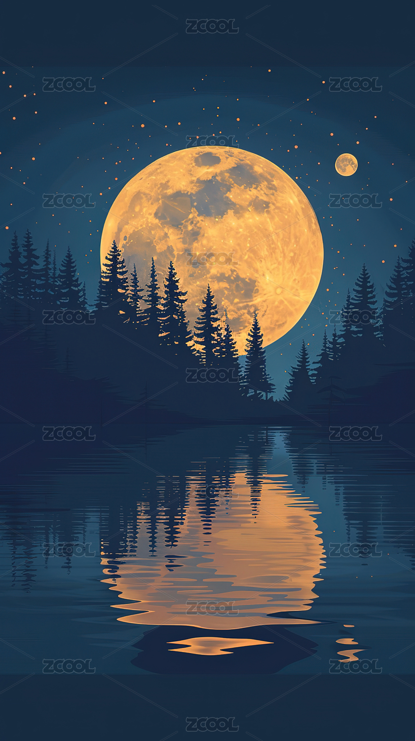 圆月升空山水森林