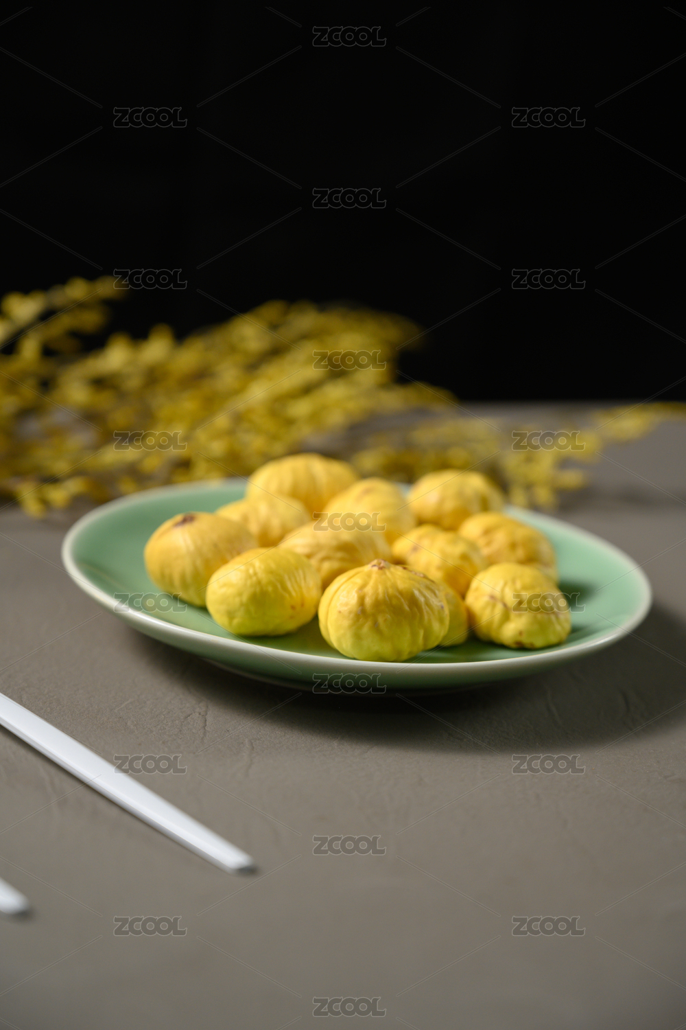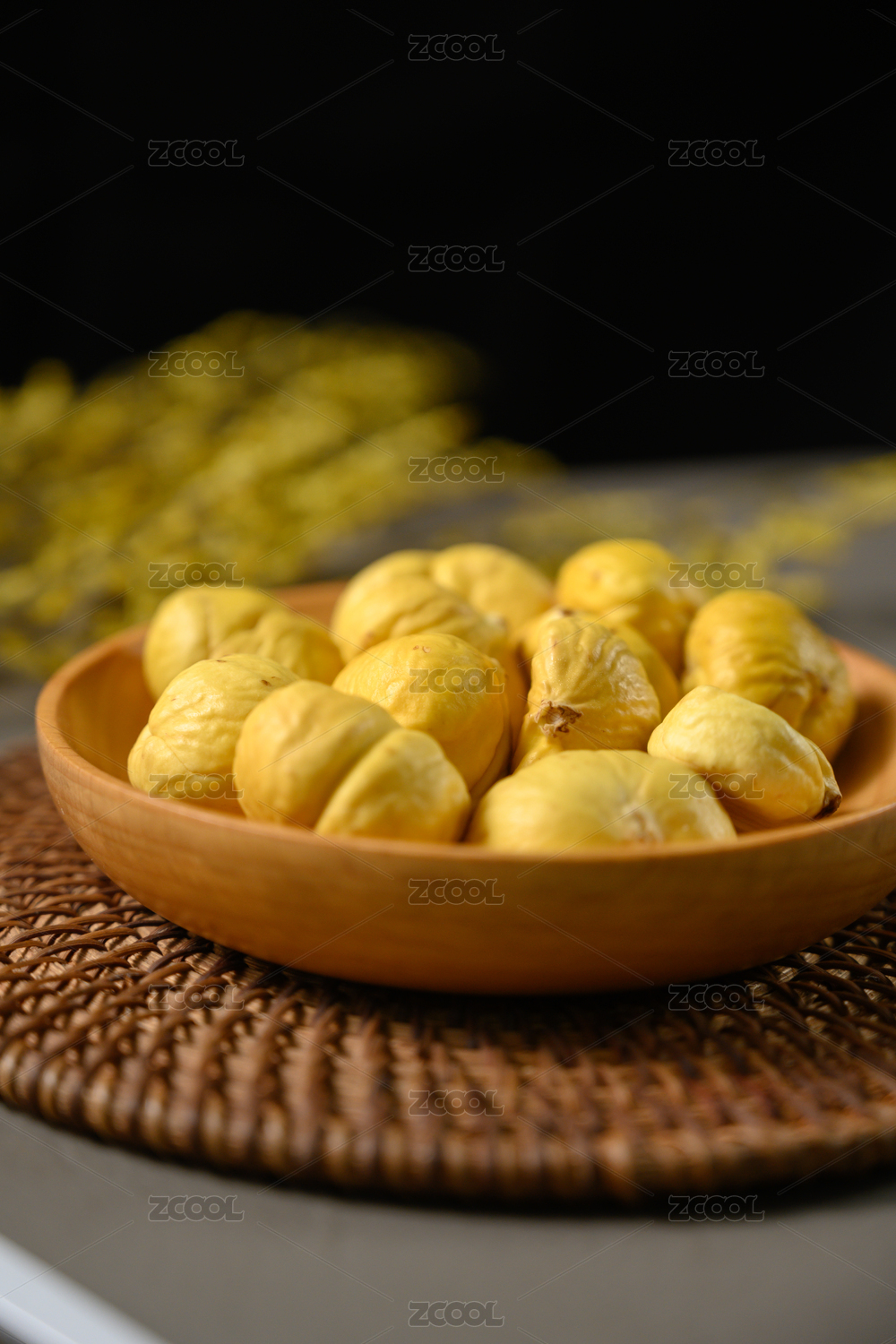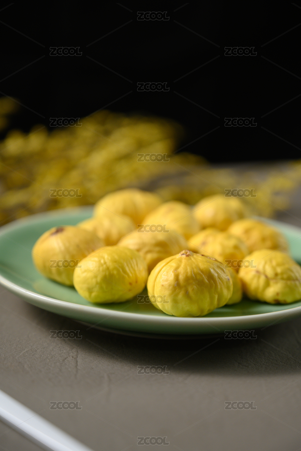 桌面上的盘子里的美味可口的新鲜板栗