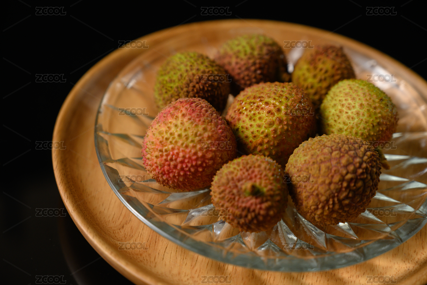 桌面上的盘子里的美味可口的荔枝