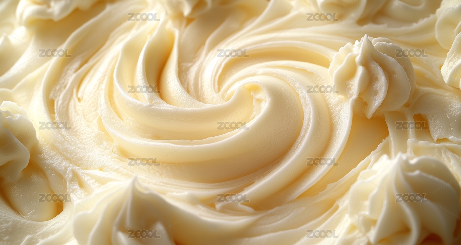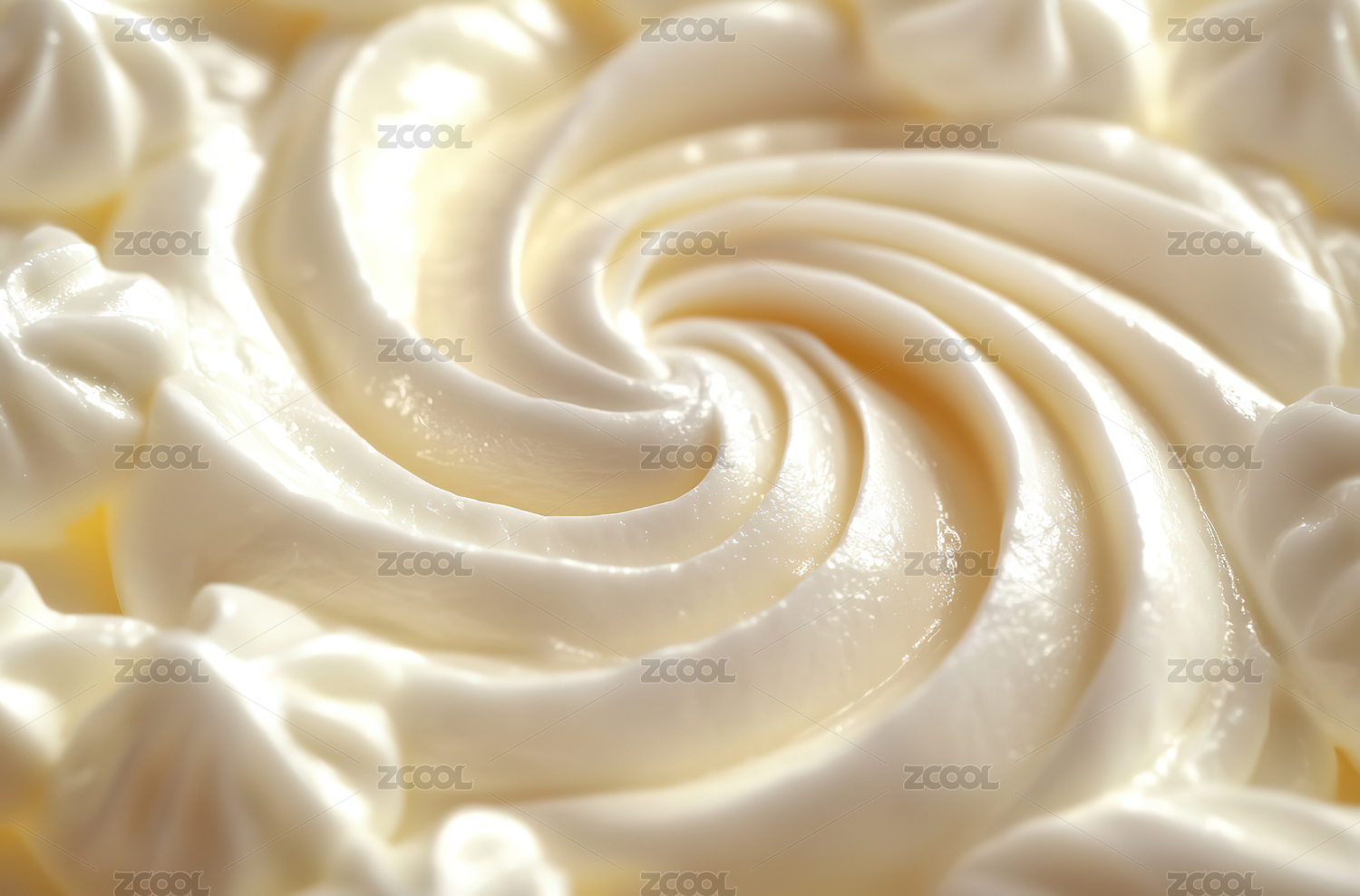 光滑乳白色膏体旋转堆叠,展现柔和质感