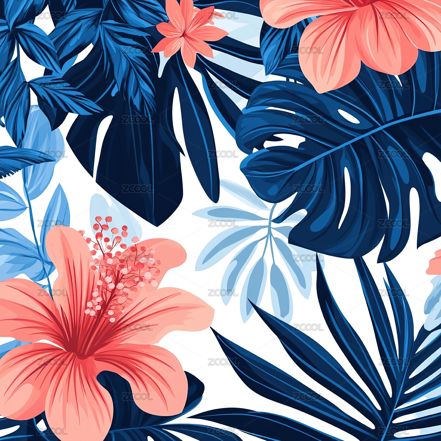 图案热带花卉异国壁纸绿叶和花卉背景