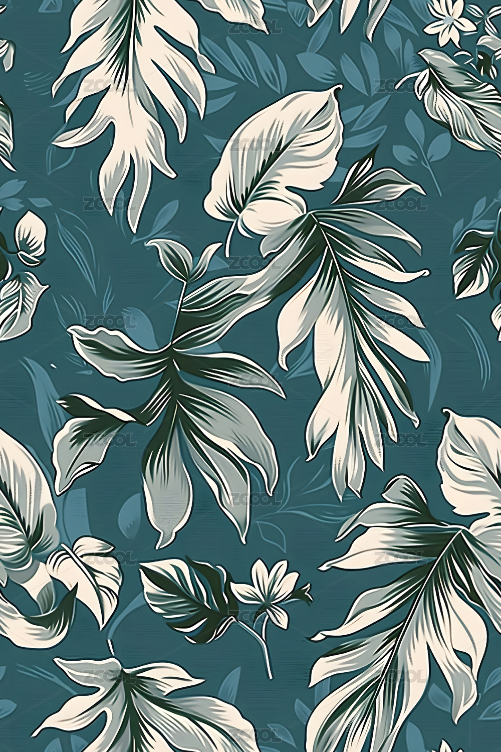 热带无缝花卉叶子,印花背景