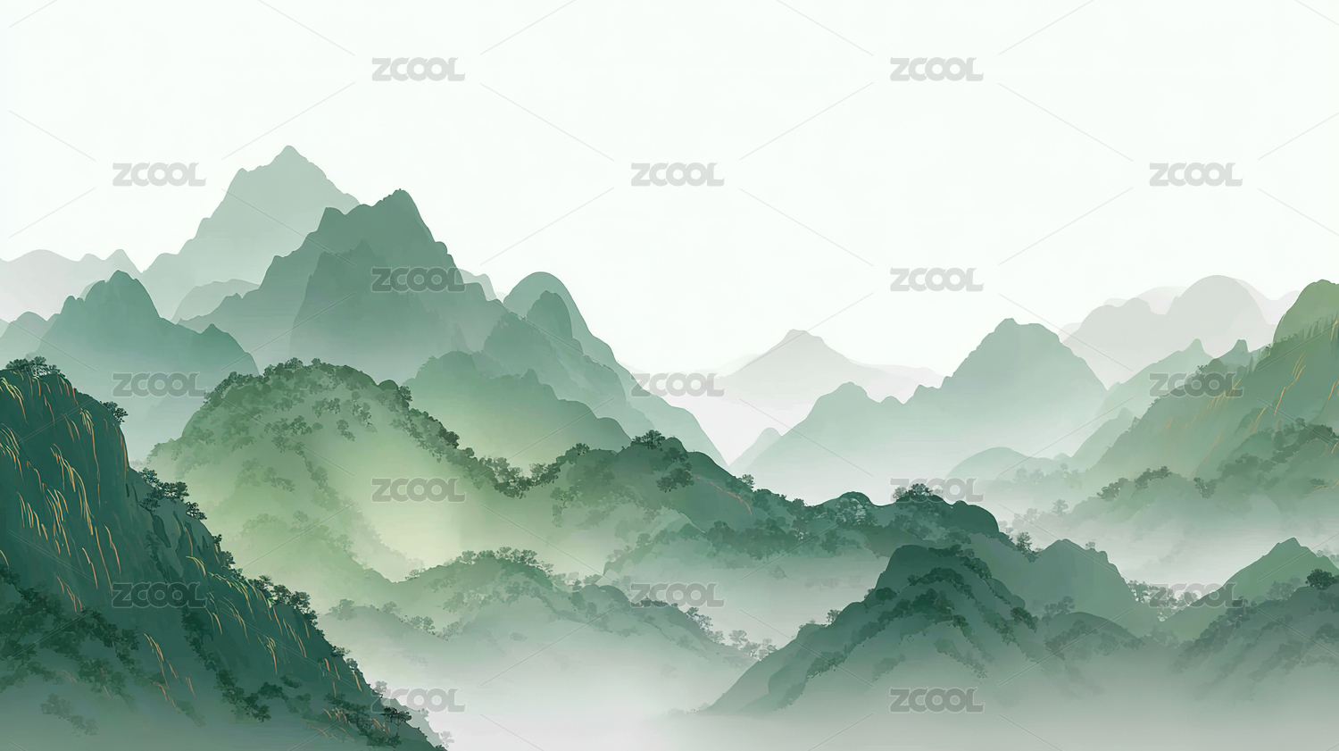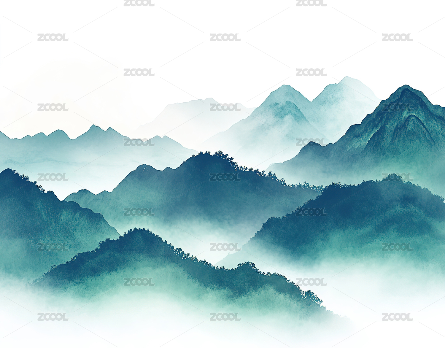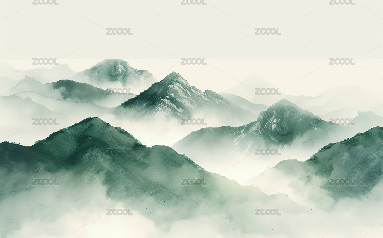 高山,户外,天空,宁静,云,旅游目的地,AI数字艺术,水墨画,自然美