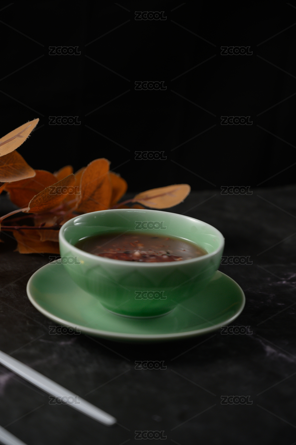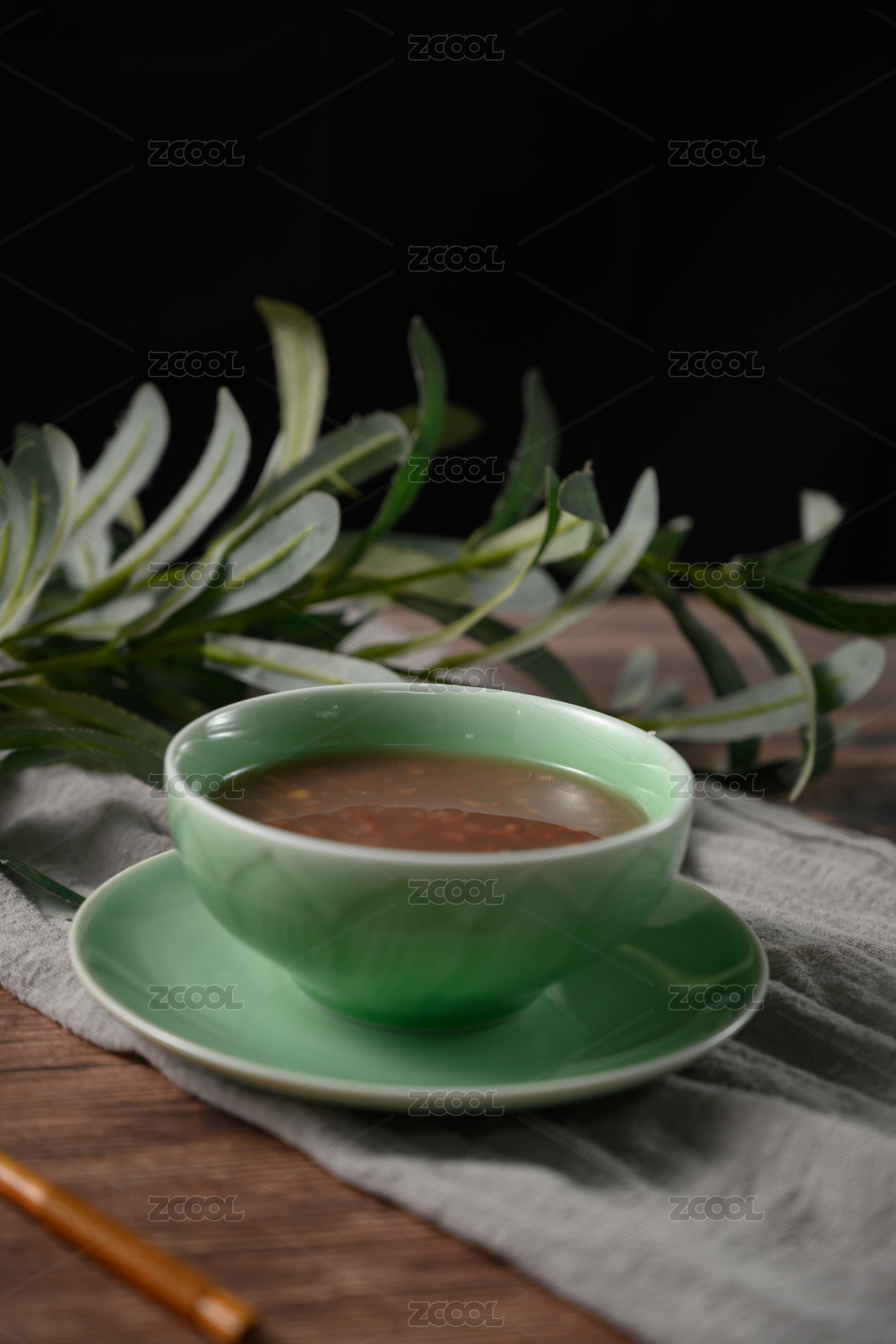 桌面上的碗里的美味可口的海带绿豆沙