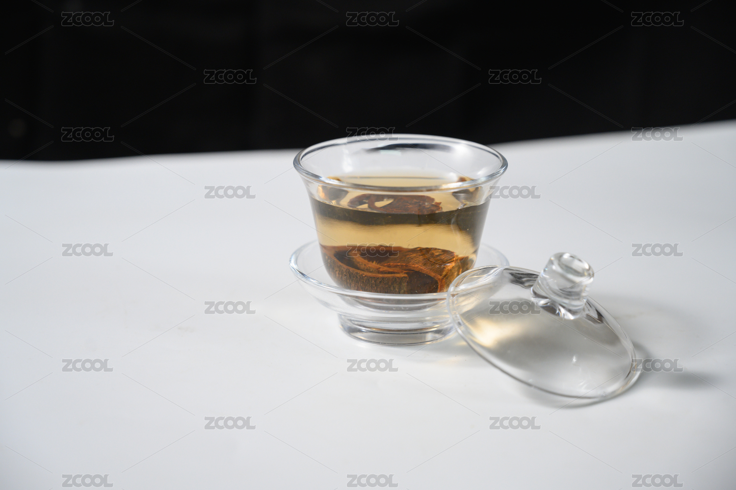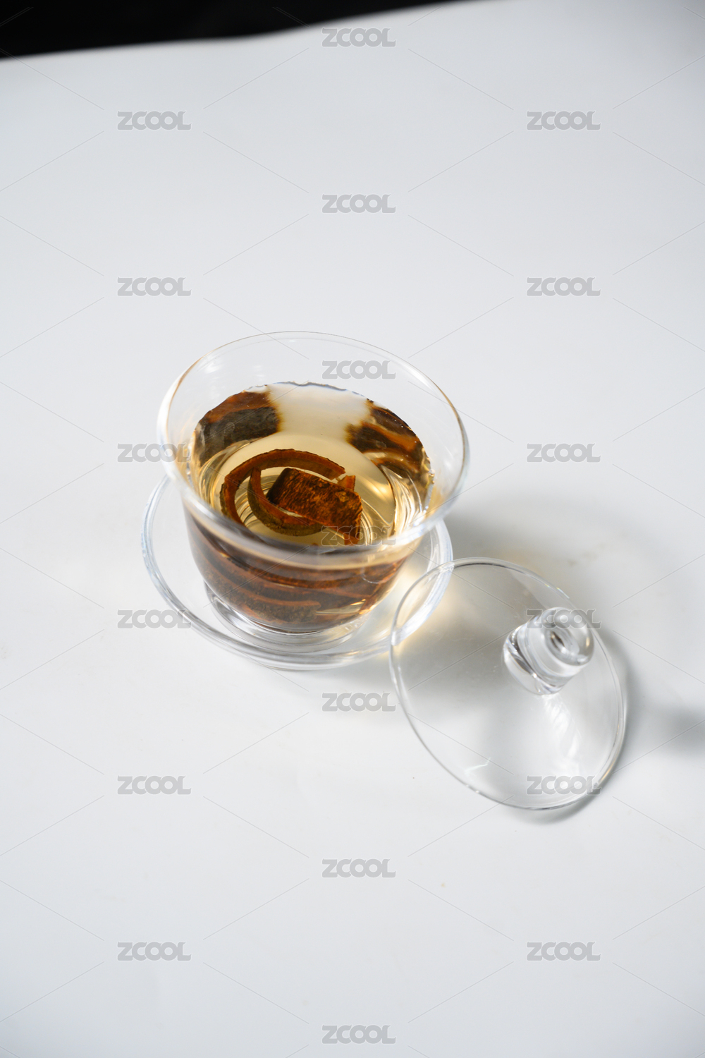 桌面上的杯子里的甘甜可口的陈皮白茶