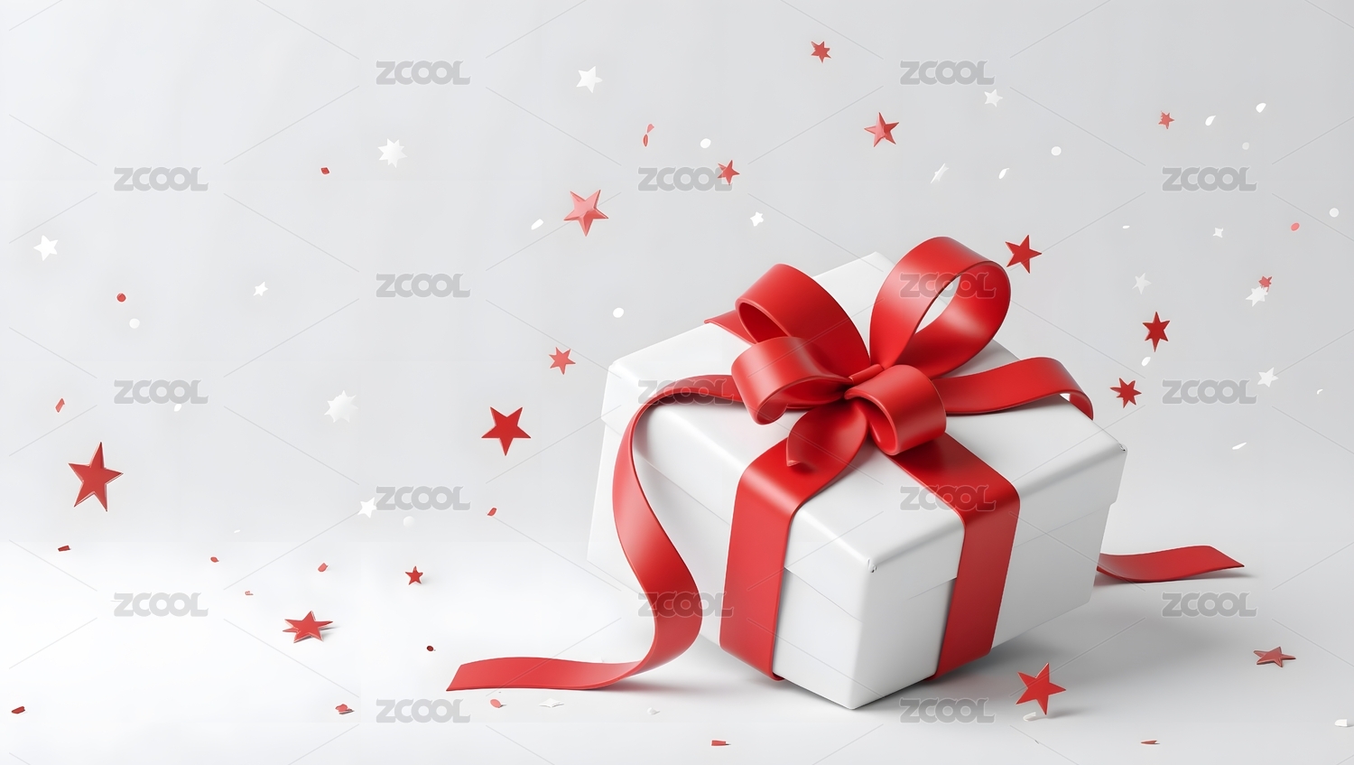 白色礼盒配红色蝴蝶结与星形装饰