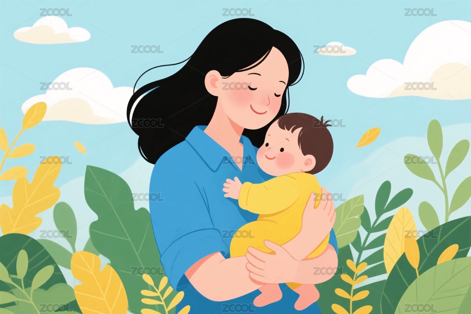 相拥的母子母亲节插画