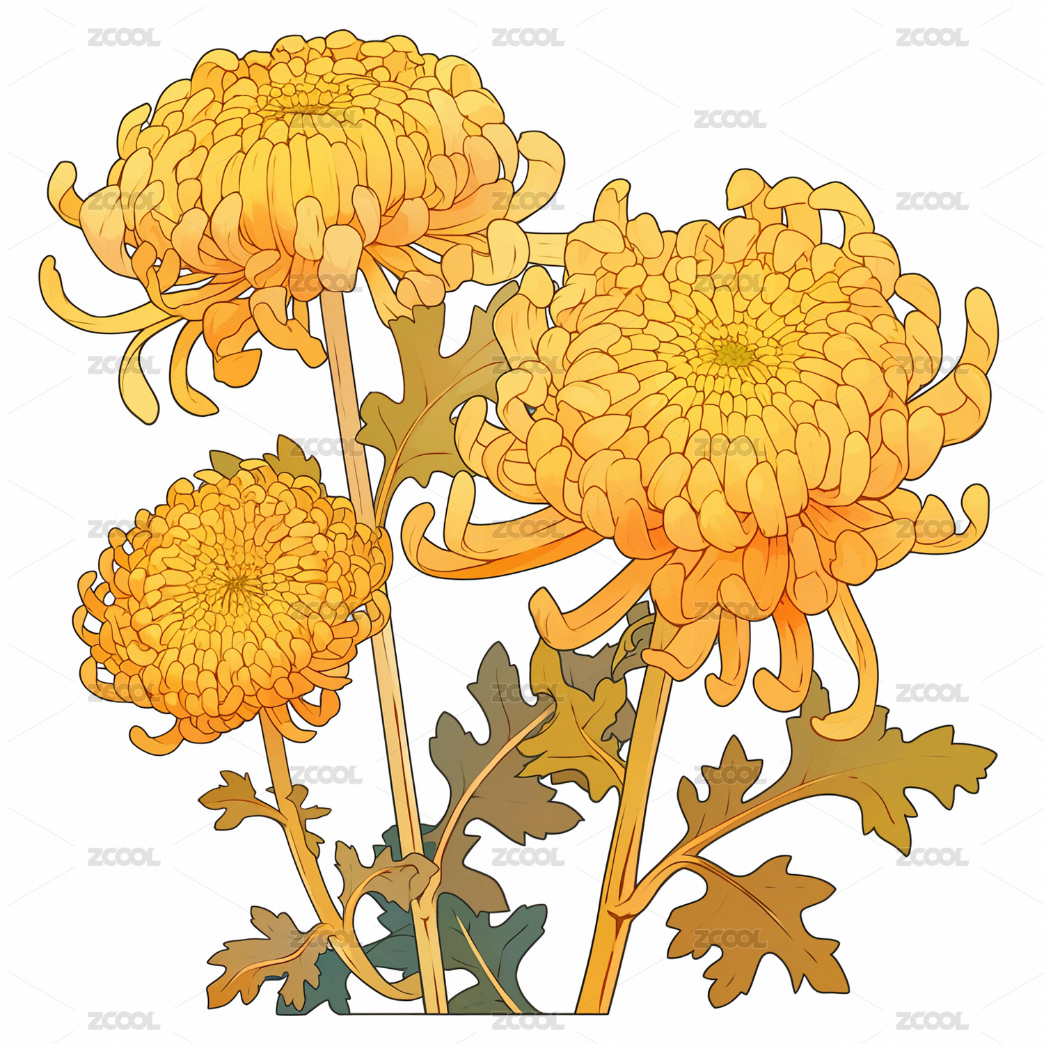 秋天菊花手绘插画