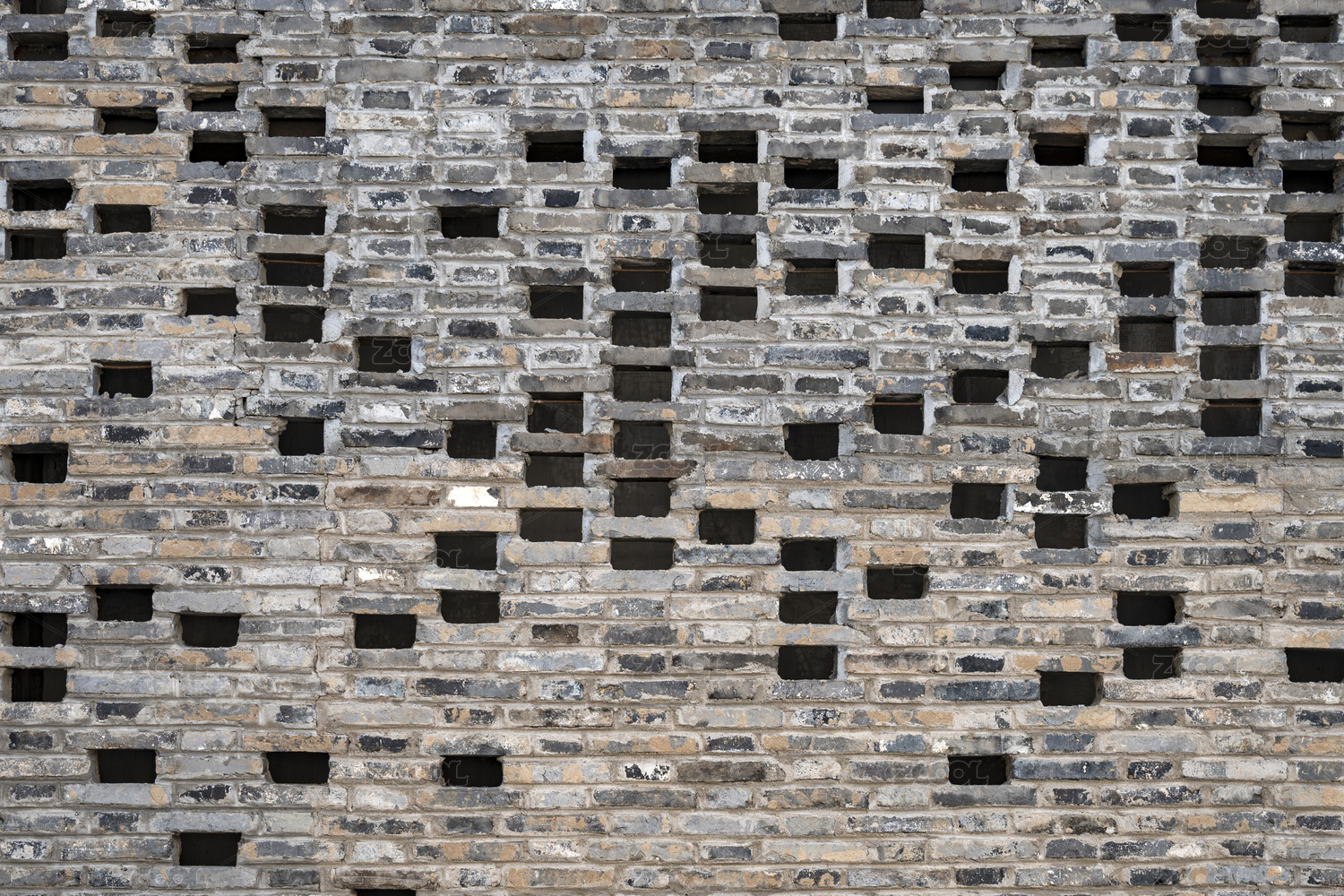 上海老建筑立体红砖墙面波浪形装饰纹理