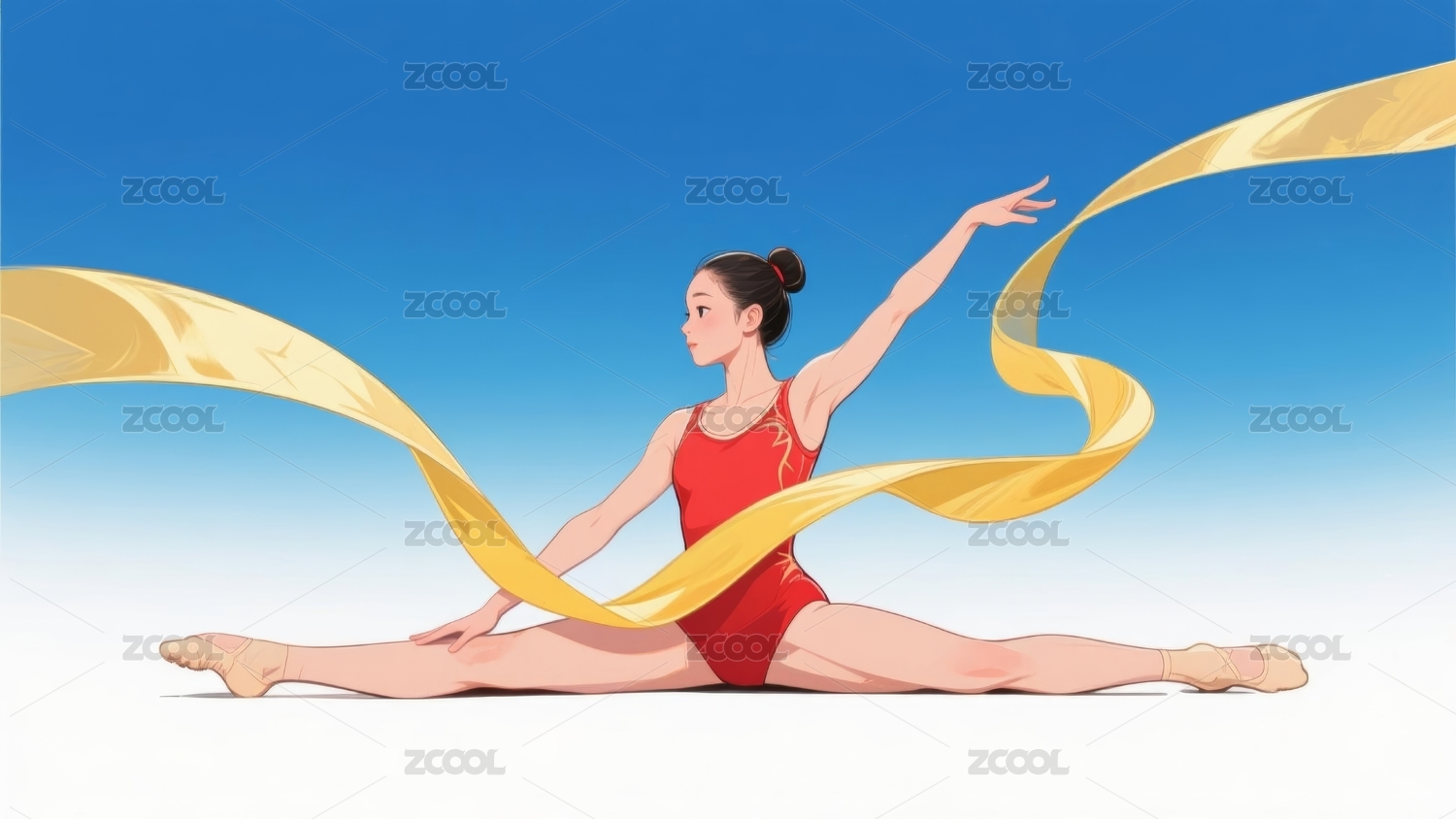 一个年轻女孩在跳艺术体操丝带舞蹈插画
