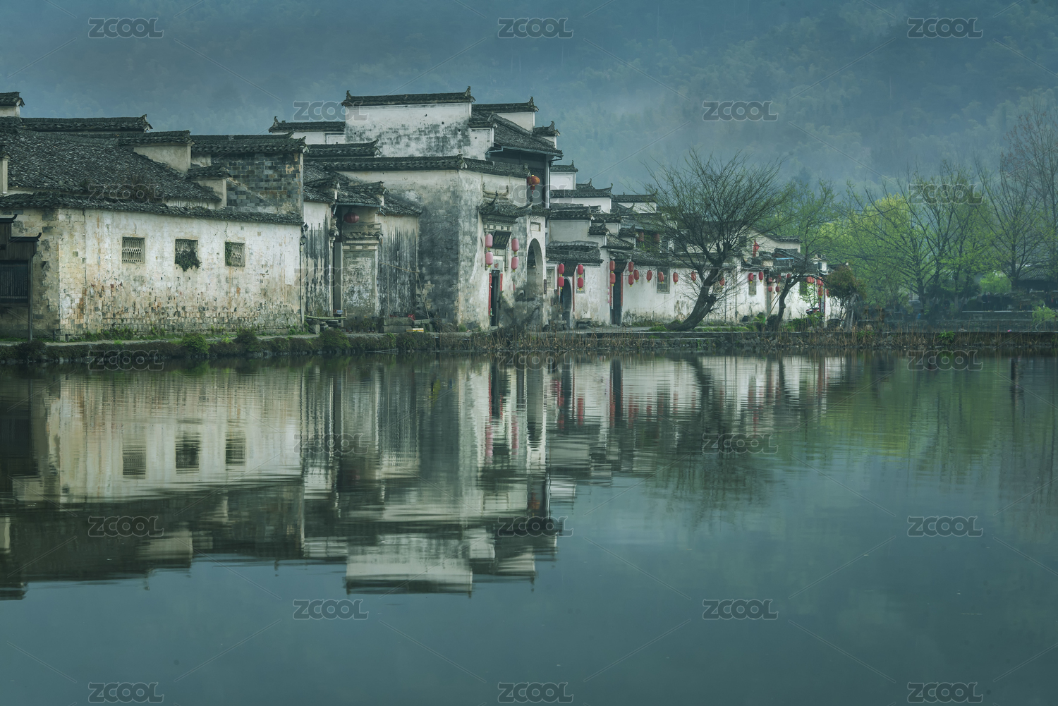 宏村,南湖,春季,春天,马头墙,徽派建筑,倒影,风光,乡村,风景