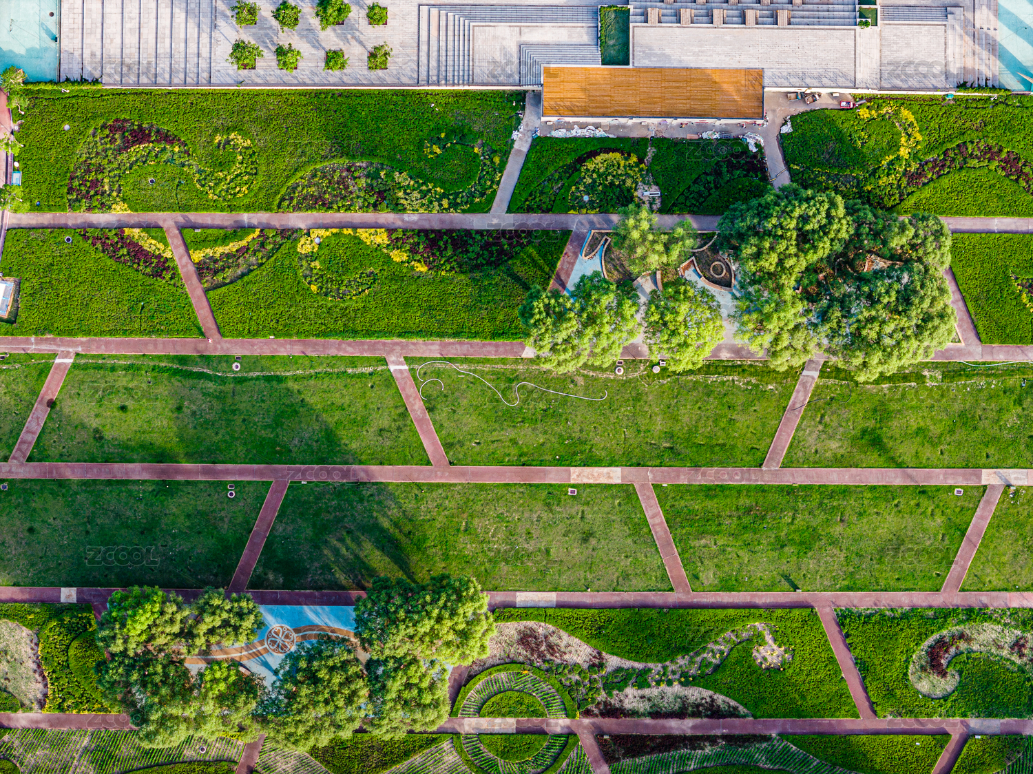 航拍植物迷宫树篱笆墙郑州植物园儿童探索园
