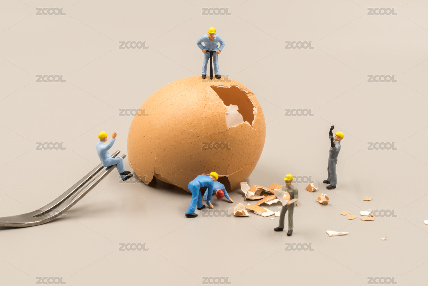 破碎的蛋壳与通力协作的工人