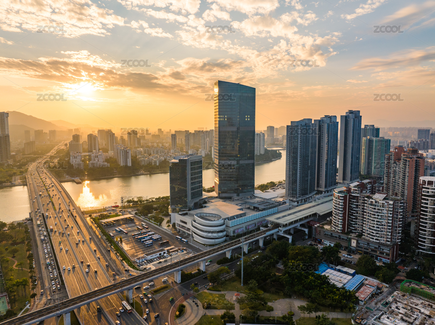 广东珠海环宇城日落航拍