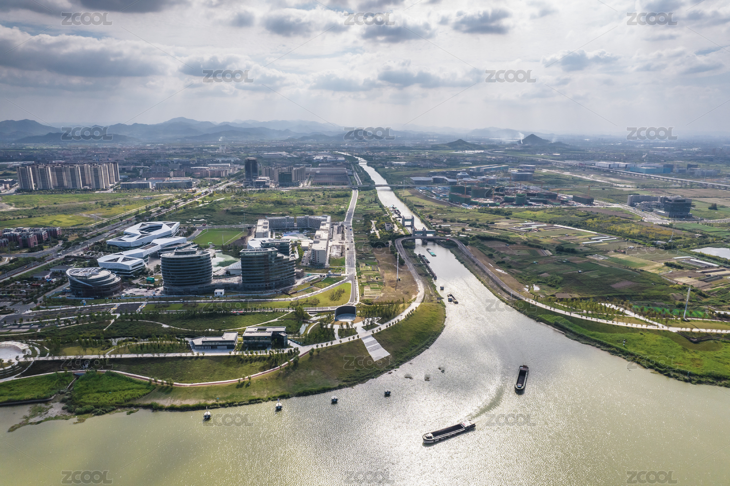 中国广东佛山三山新城文翰湖公园和季华实验室航拍