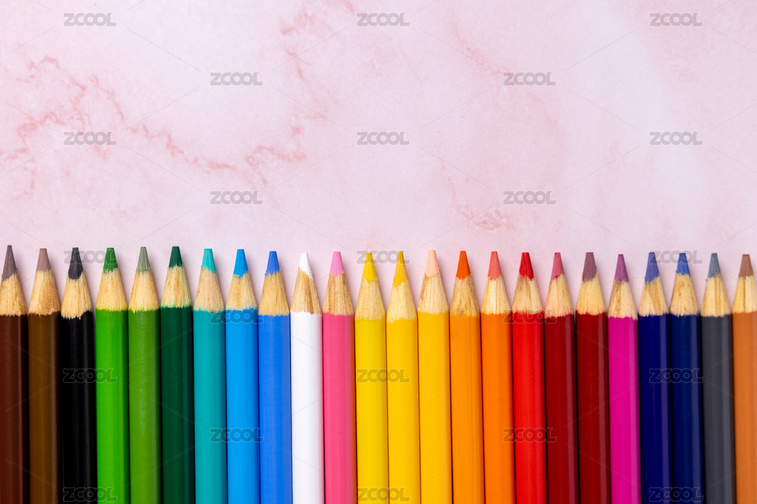 整齐排列的彩色铅笔