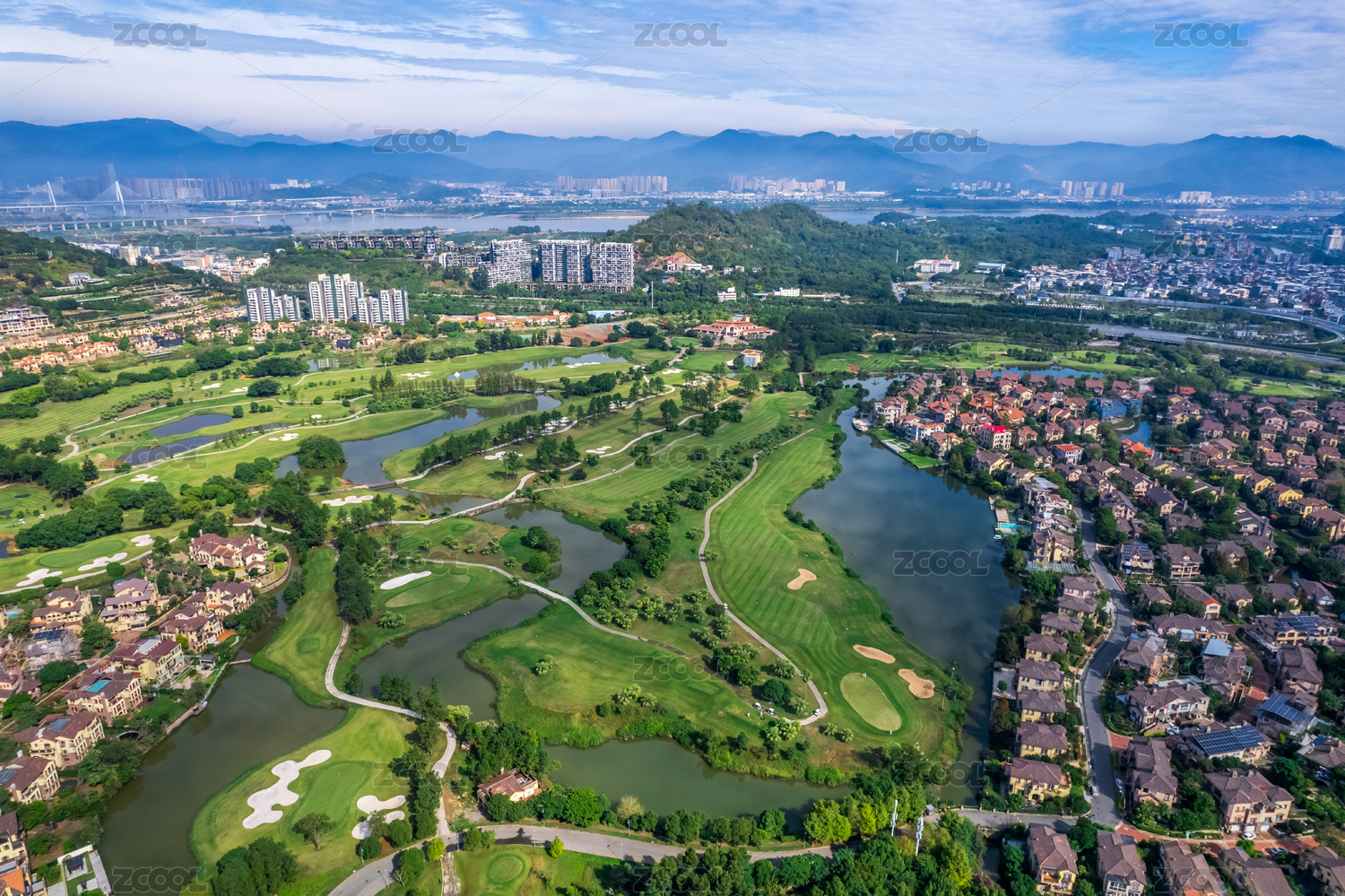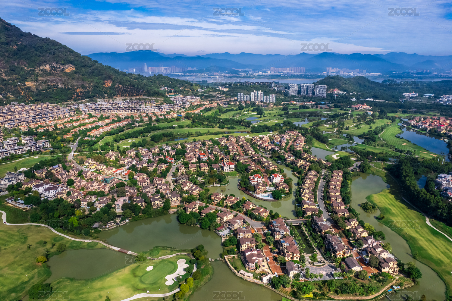 中国福建省福州市高尔夫球场别墅区航拍