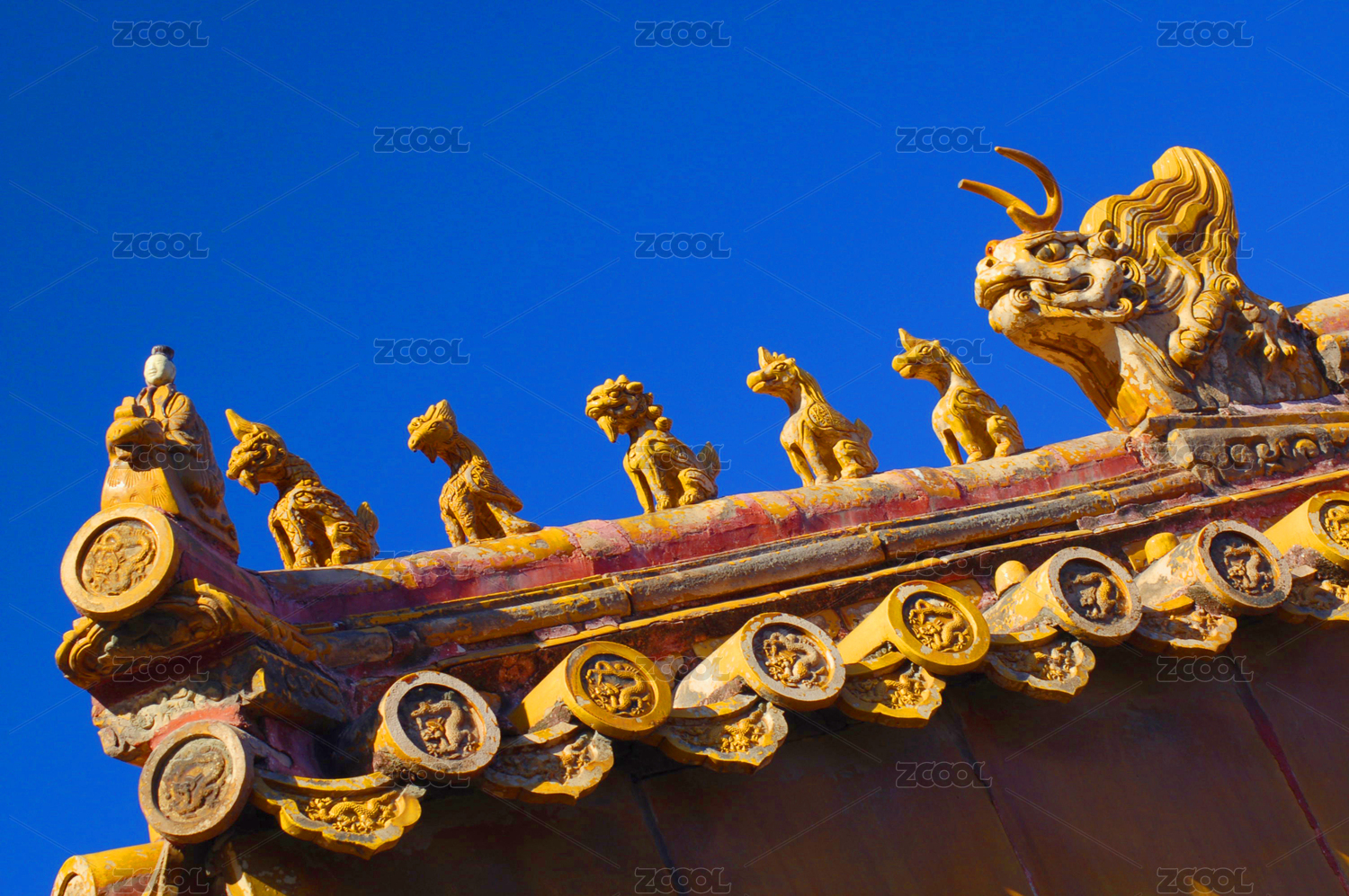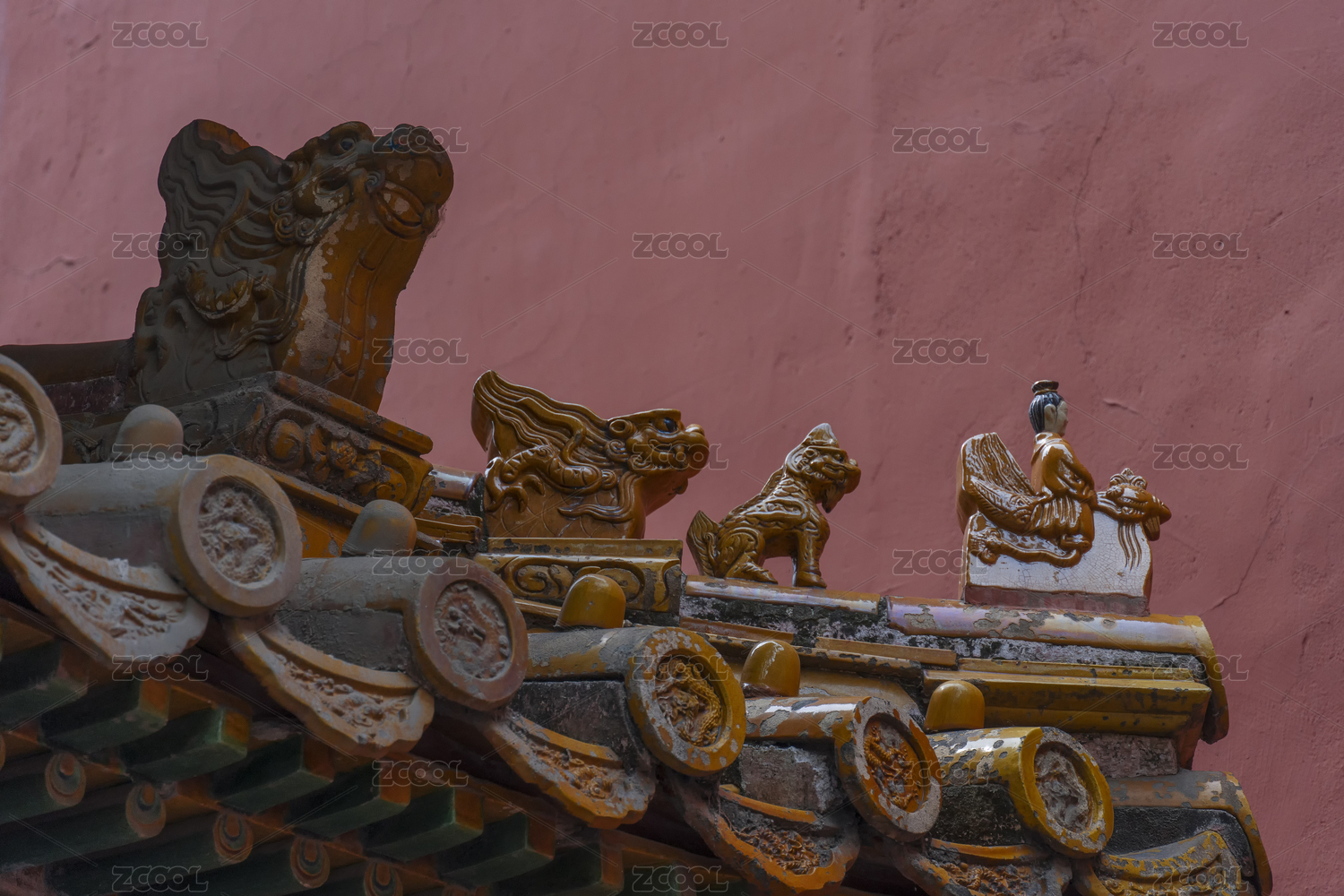 北京紫禁城古建筑飞檐构件琉璃五脊六兽
