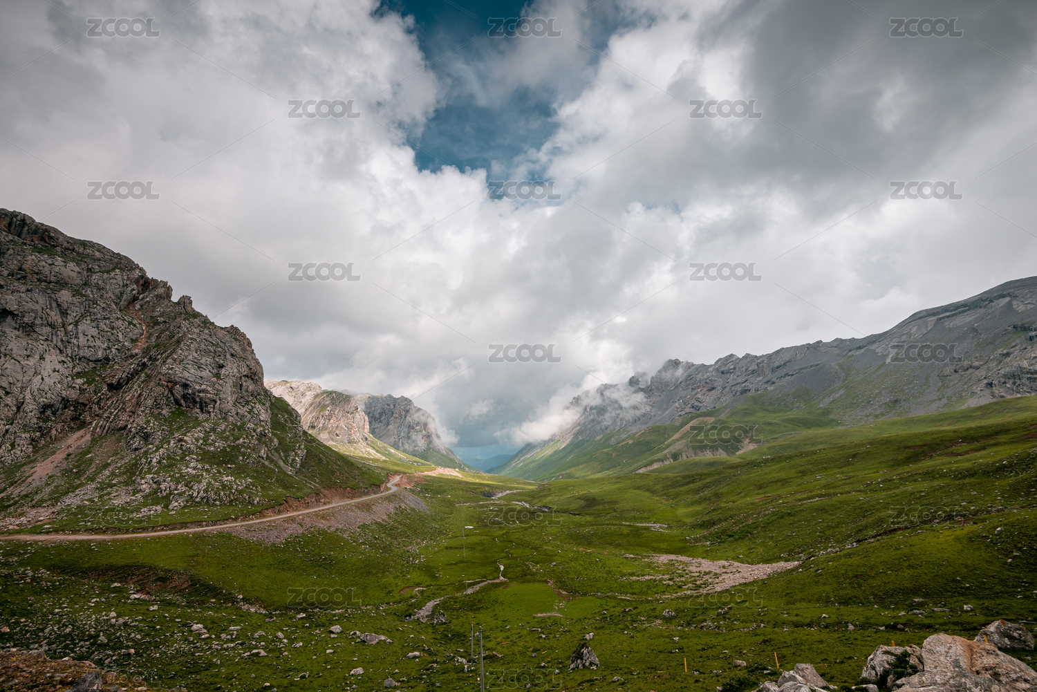 甘南洛克之路险峻奇绝山脉峡谷绿色草地