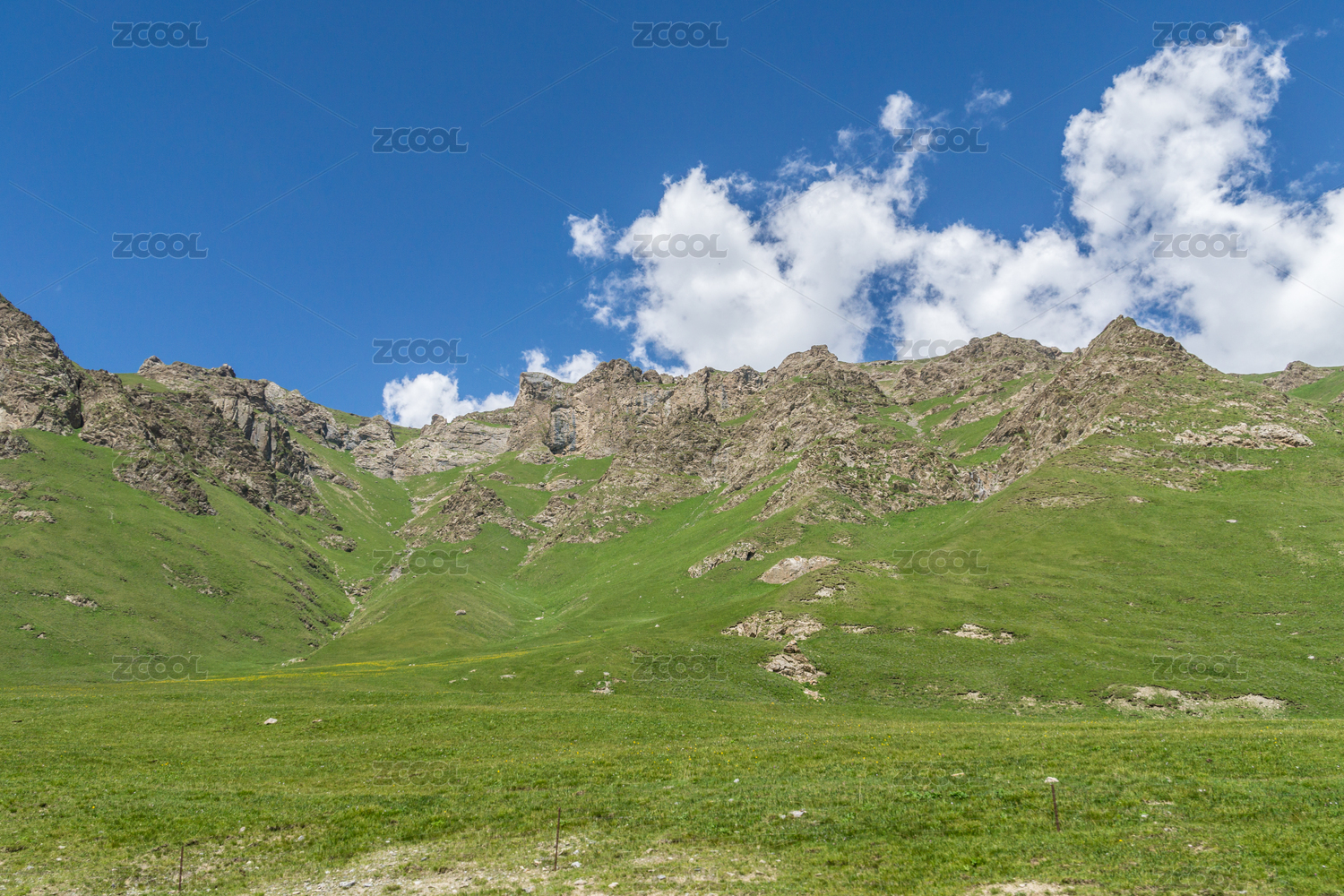 山峰,北疆,蓝天白云,高山草原,森林,晴天,自然美,自然风光,地形,天山山脉