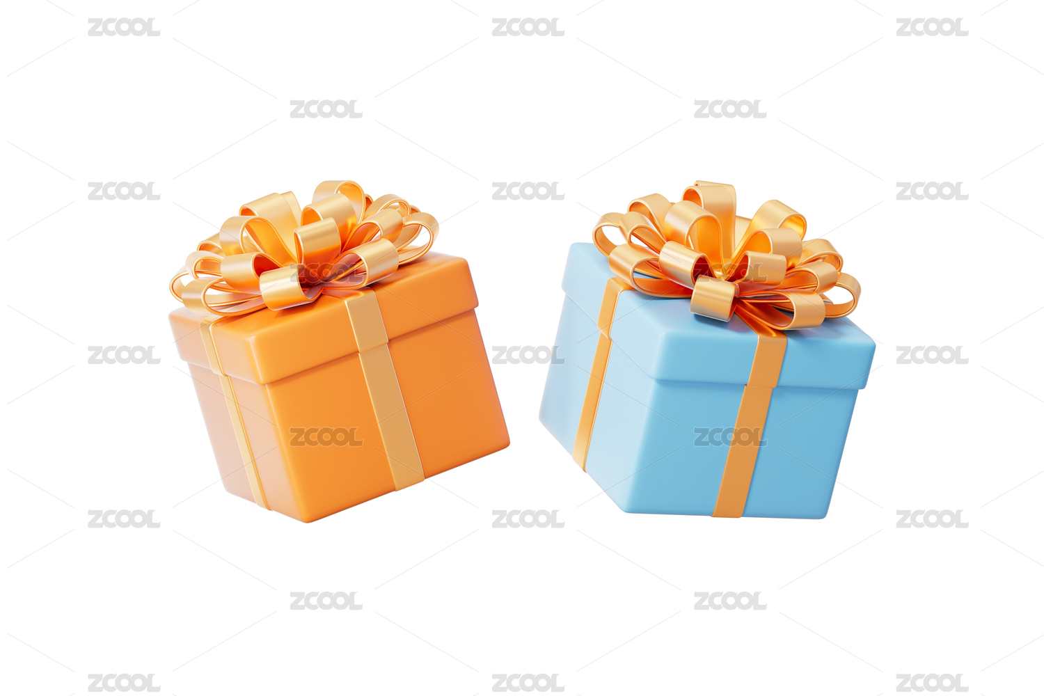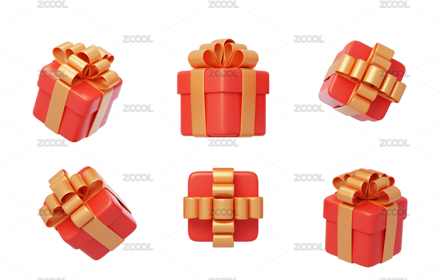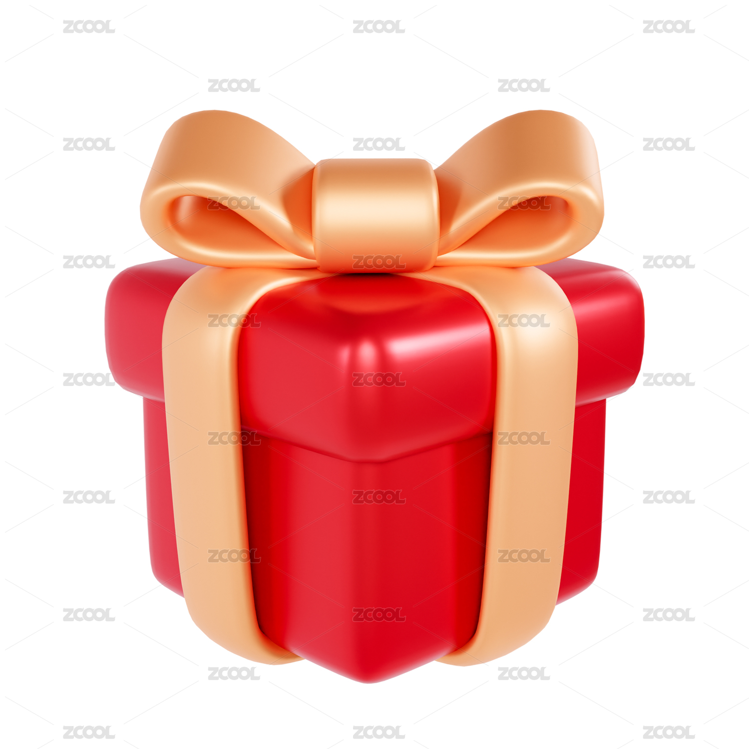 红金色礼物盒新年促销喜庆3d立体插画元素
