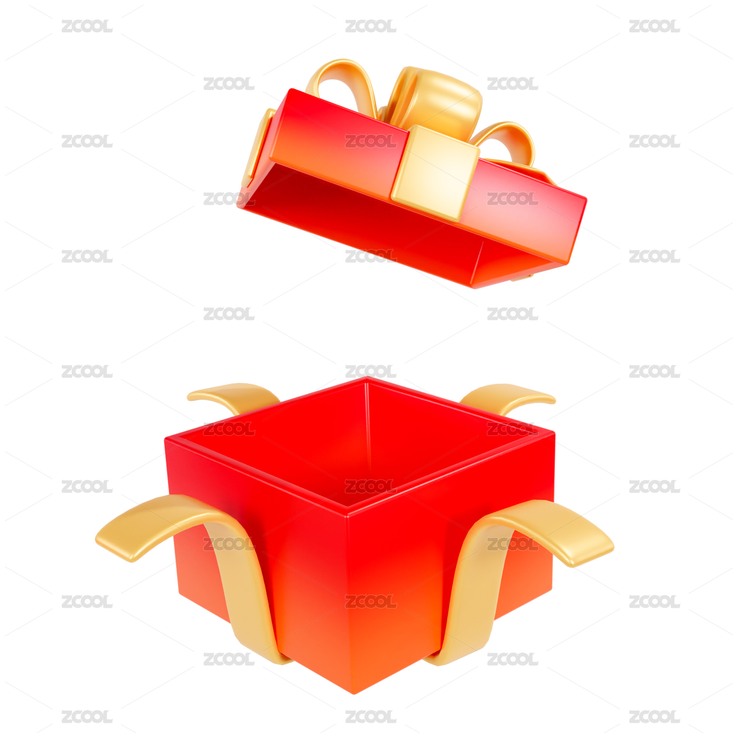3D渲染的打开的红色礼盒礼物电商购物元素
