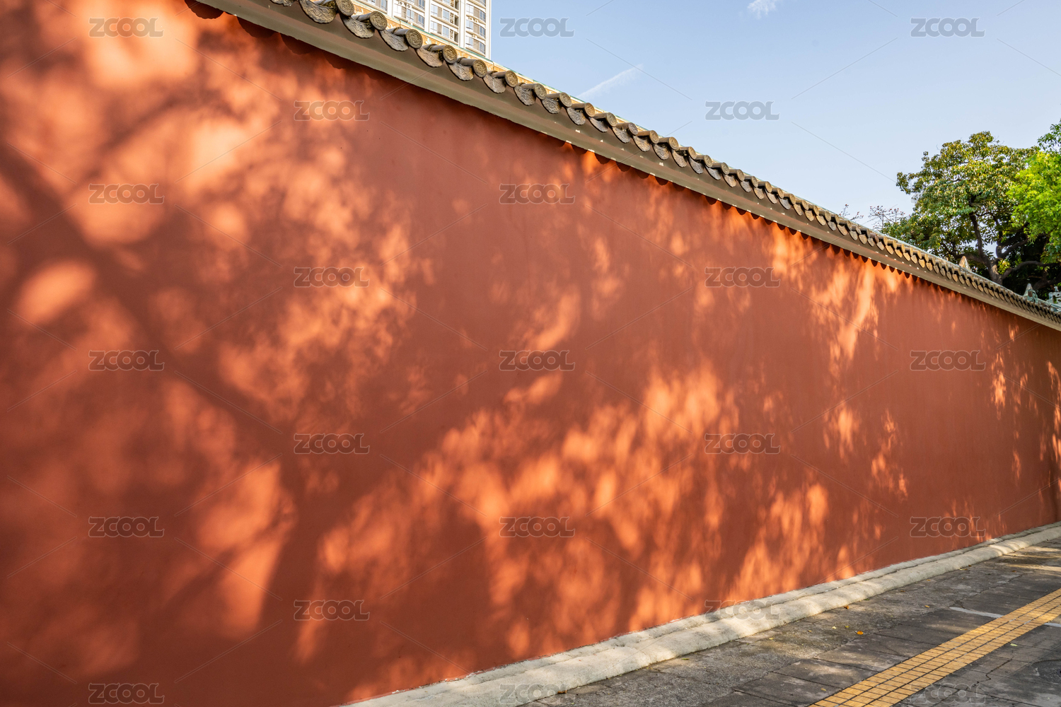 中国山东省淄博市临淄区姜太公祠青瓦红色院墙