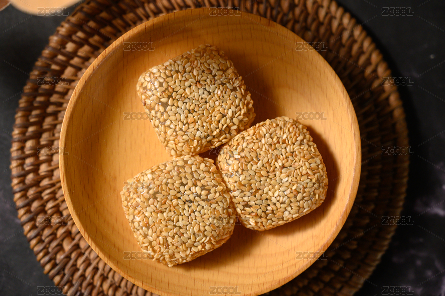 黑色背景客家风味传统小吃芝麻味糯米糍