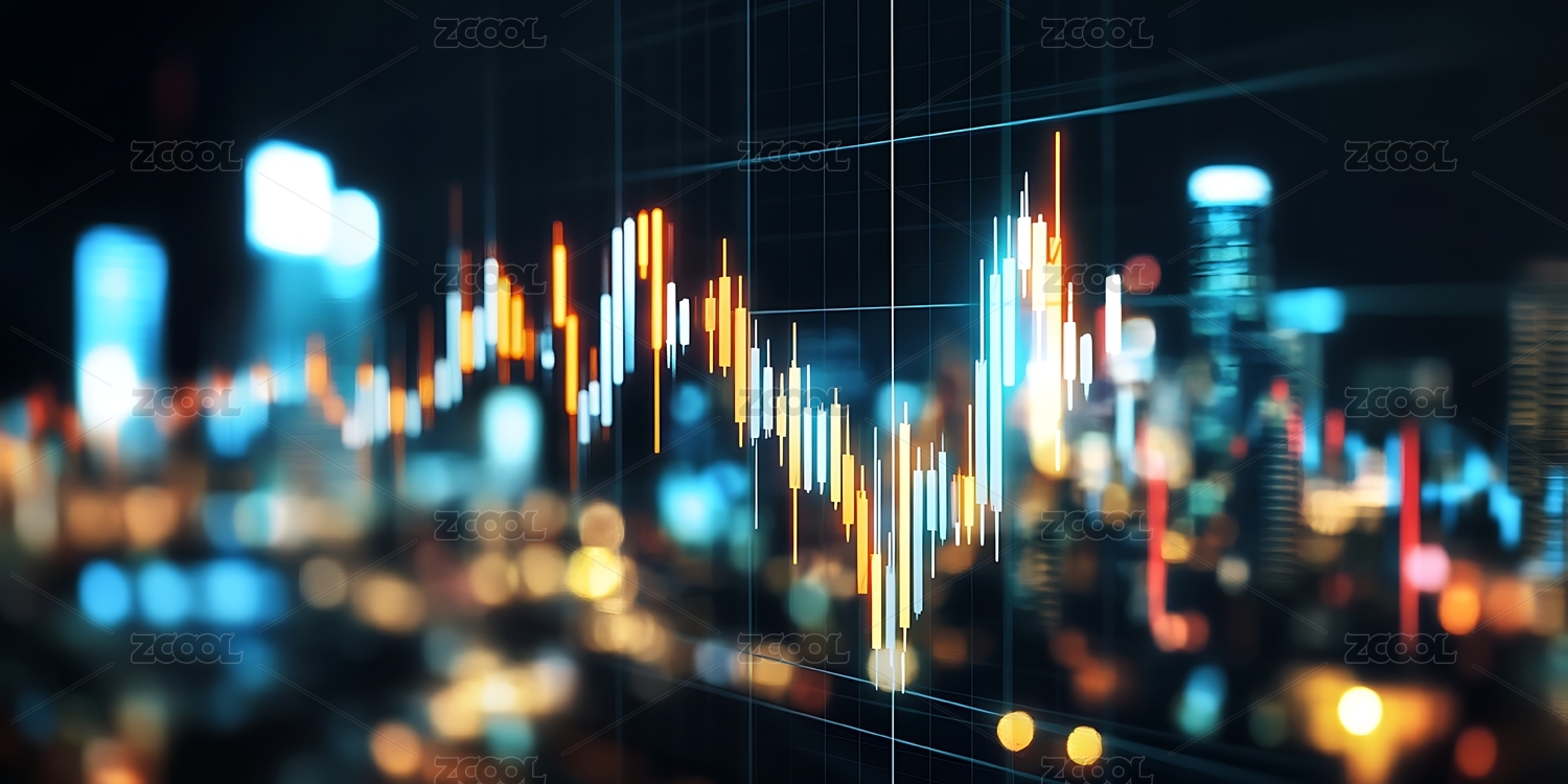 城市夜景与金融数据可视化融合背景图