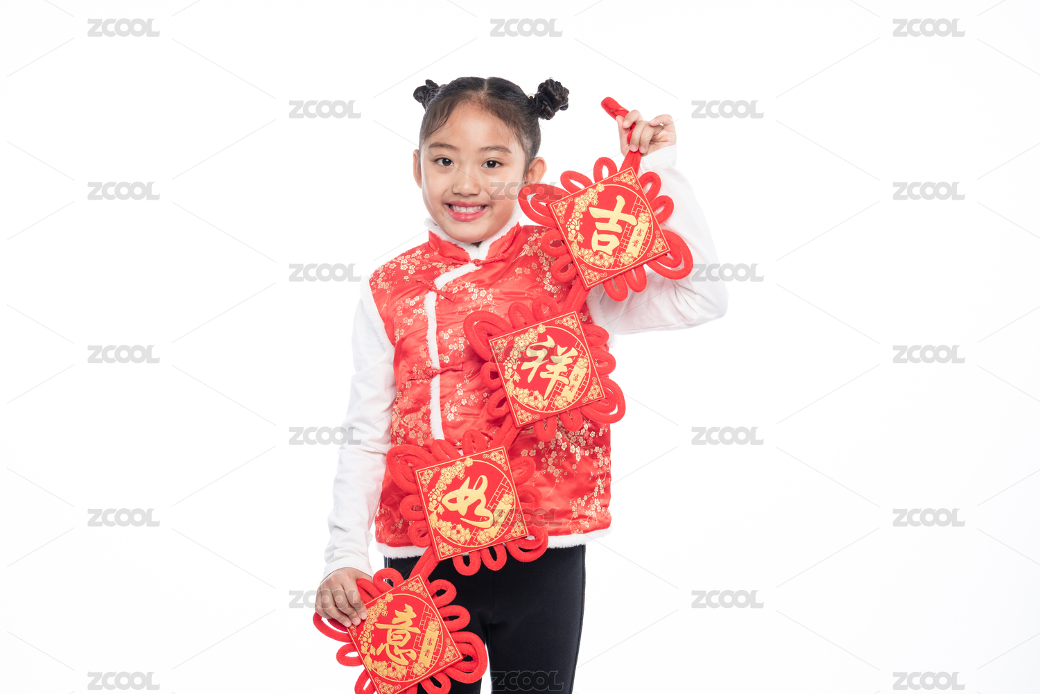 东方人,中国,黄种人,女孩,学生,衬衣,手持,福字,窗贴,过年