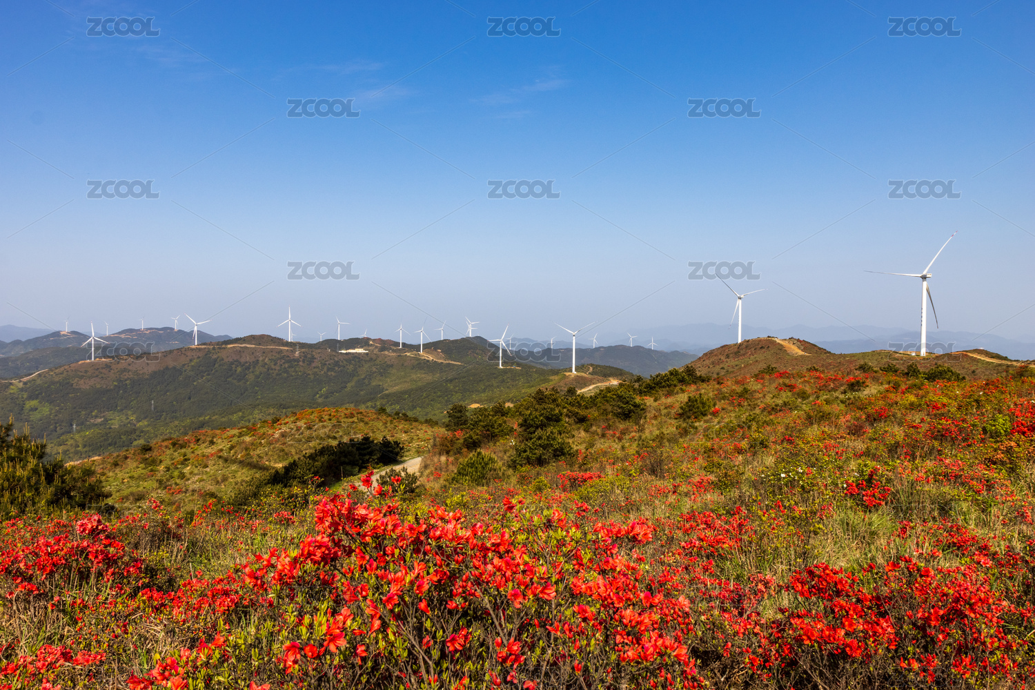中国福建古田县高岗山杜鹃花海和风力发电场