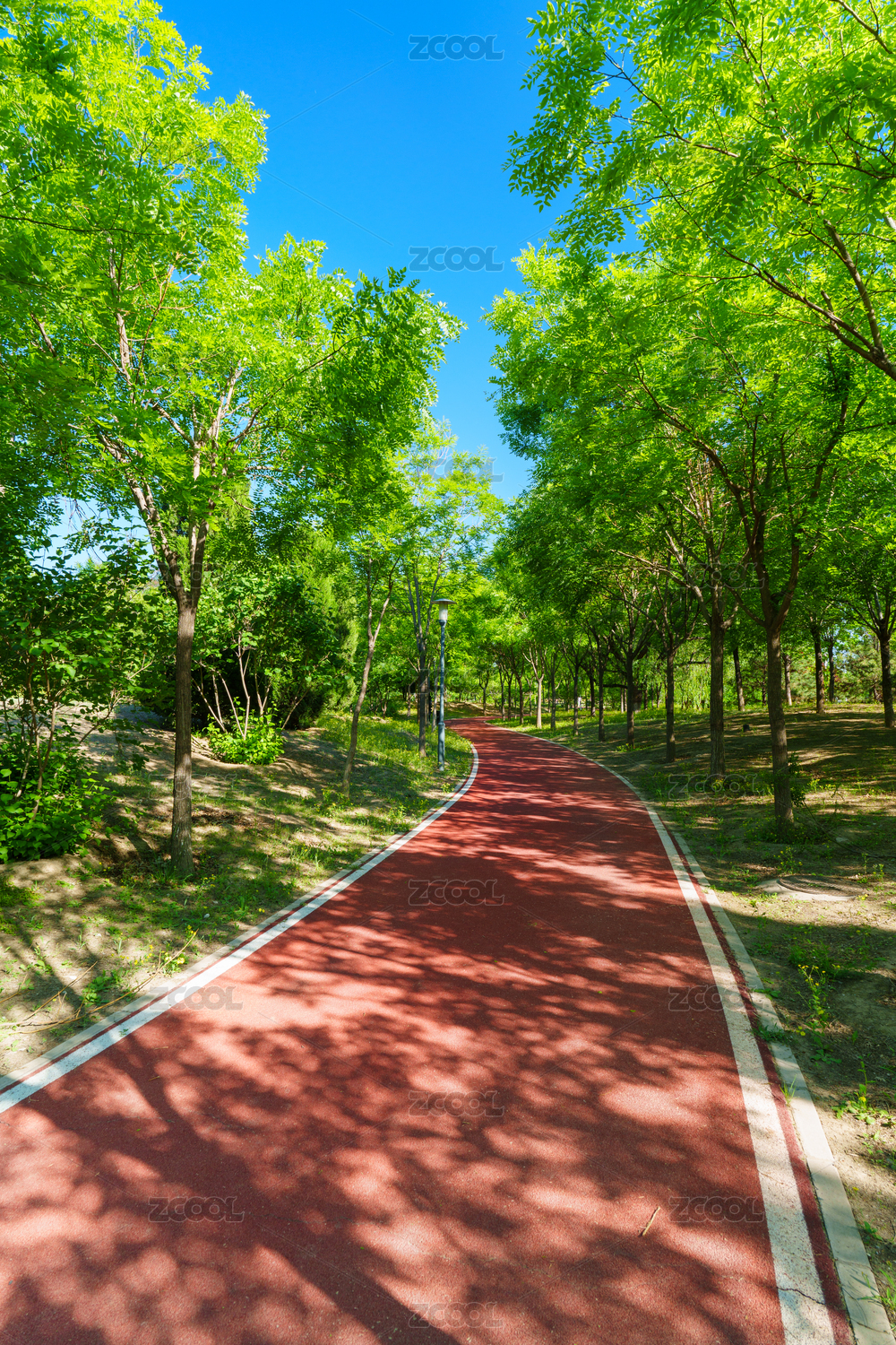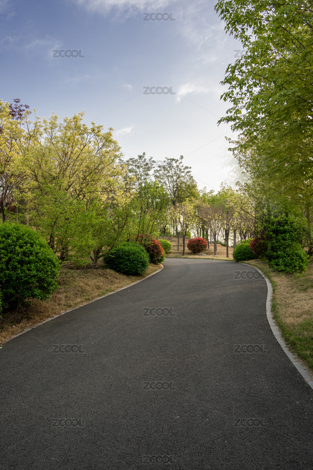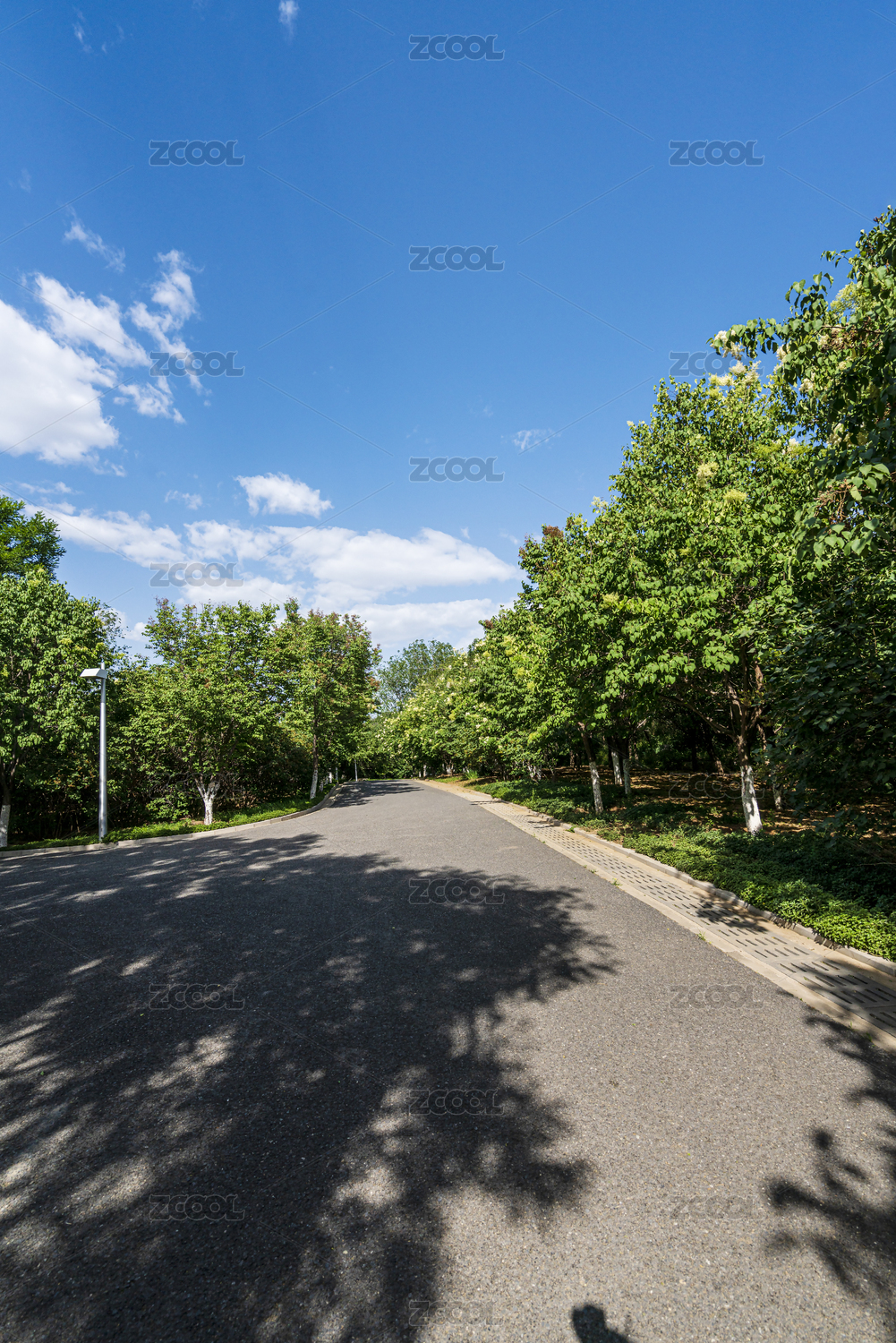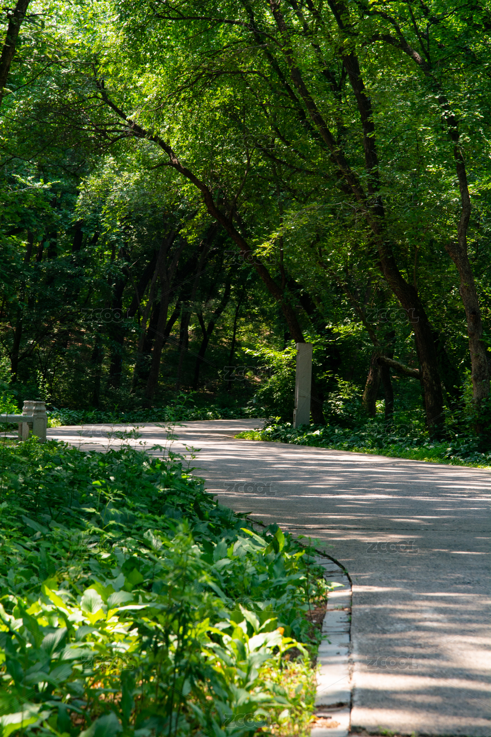 夏天里向远方曲折延伸的绿树成荫的林荫道