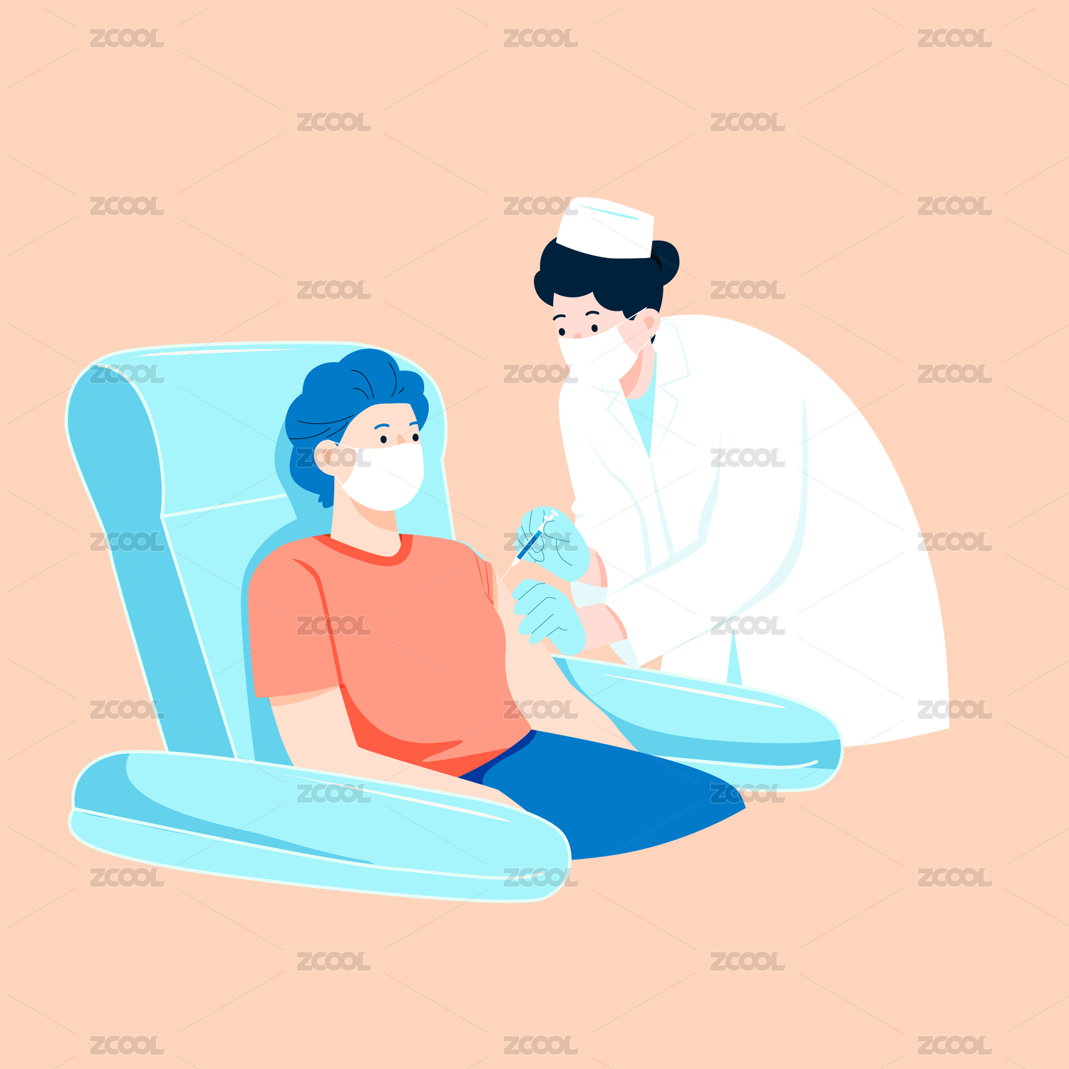 医生疫情接种新冠疫苗保障医疗健康矢量插图