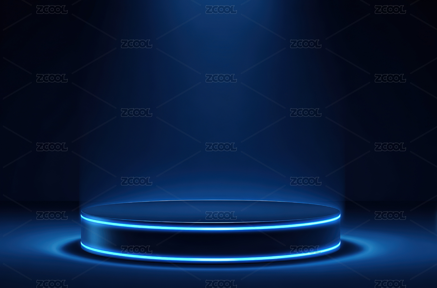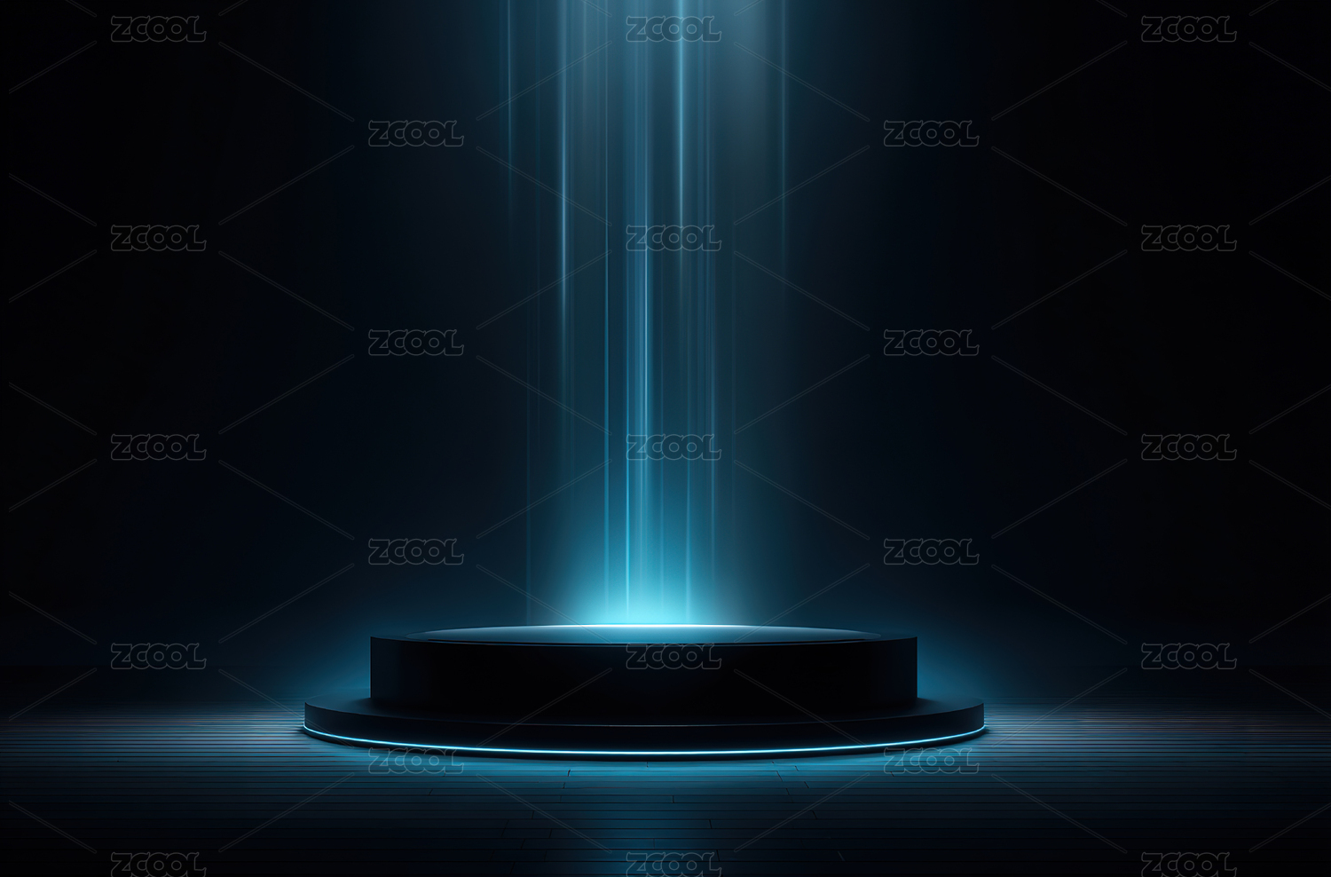 蓝色光束照射的圆形平台