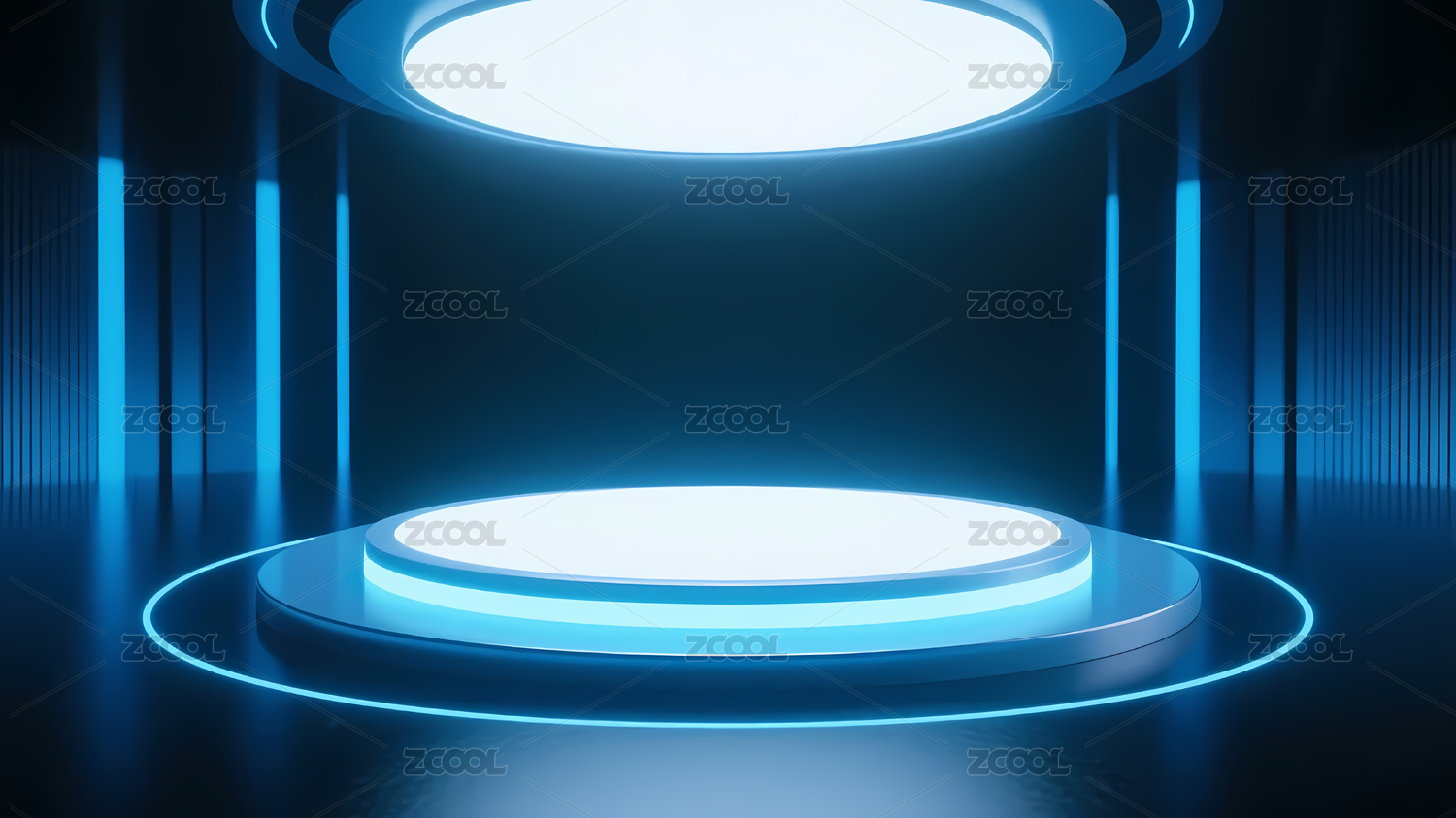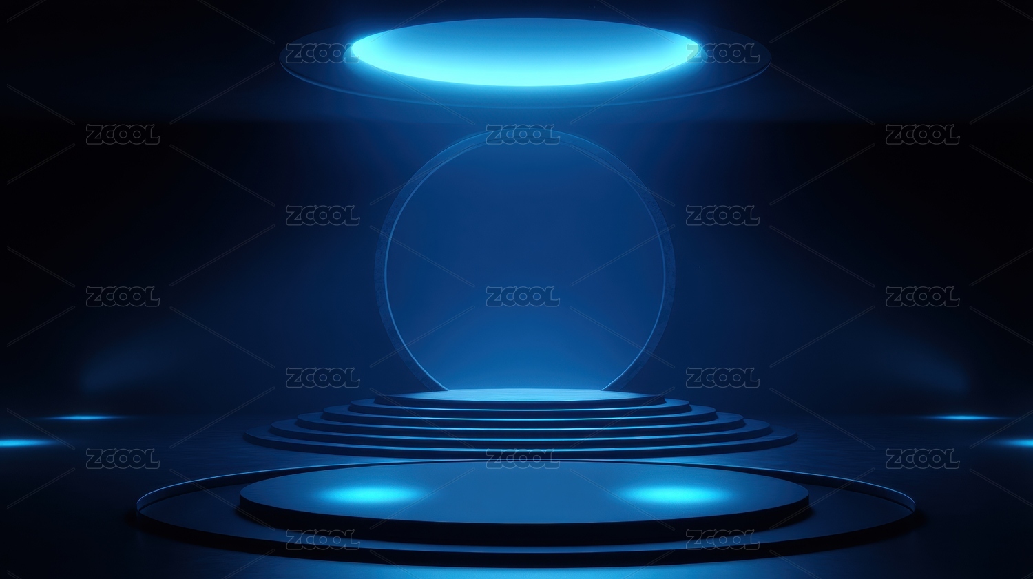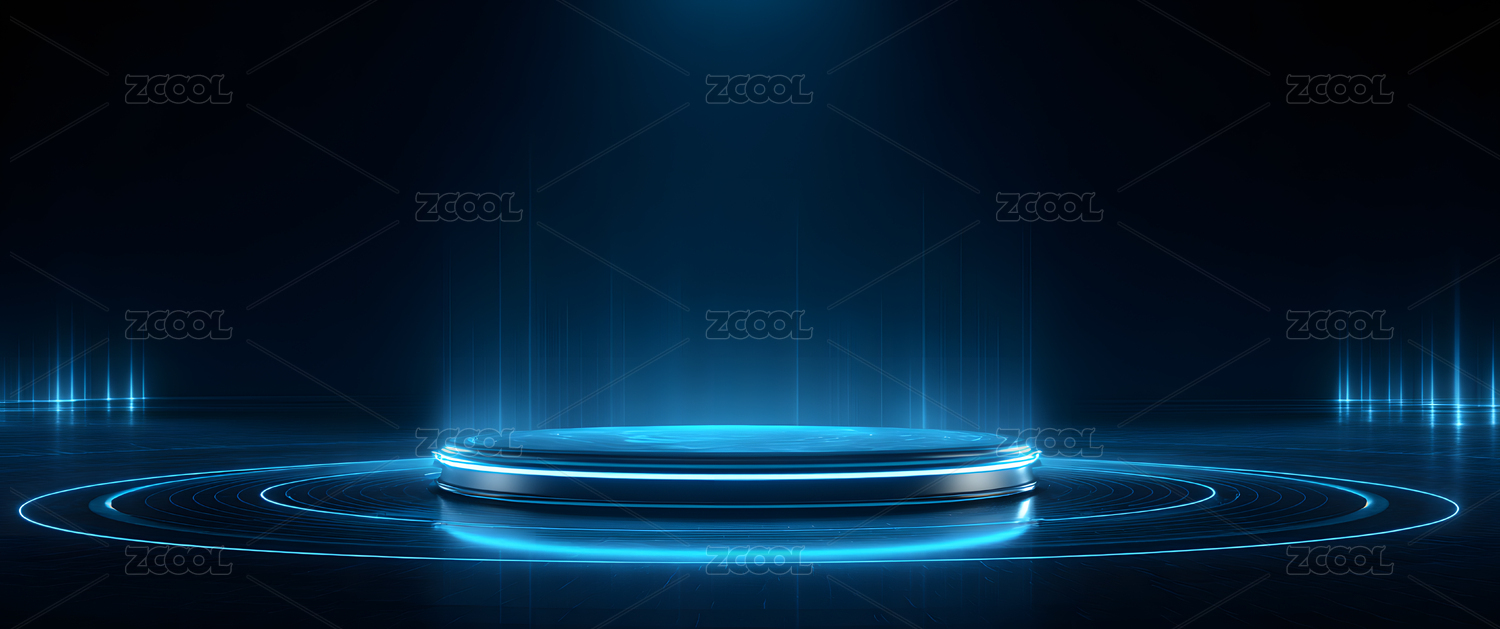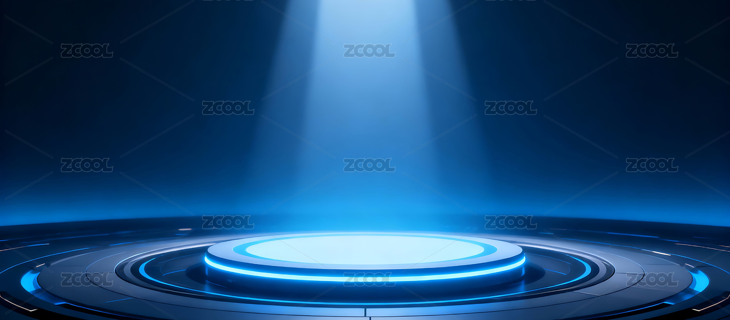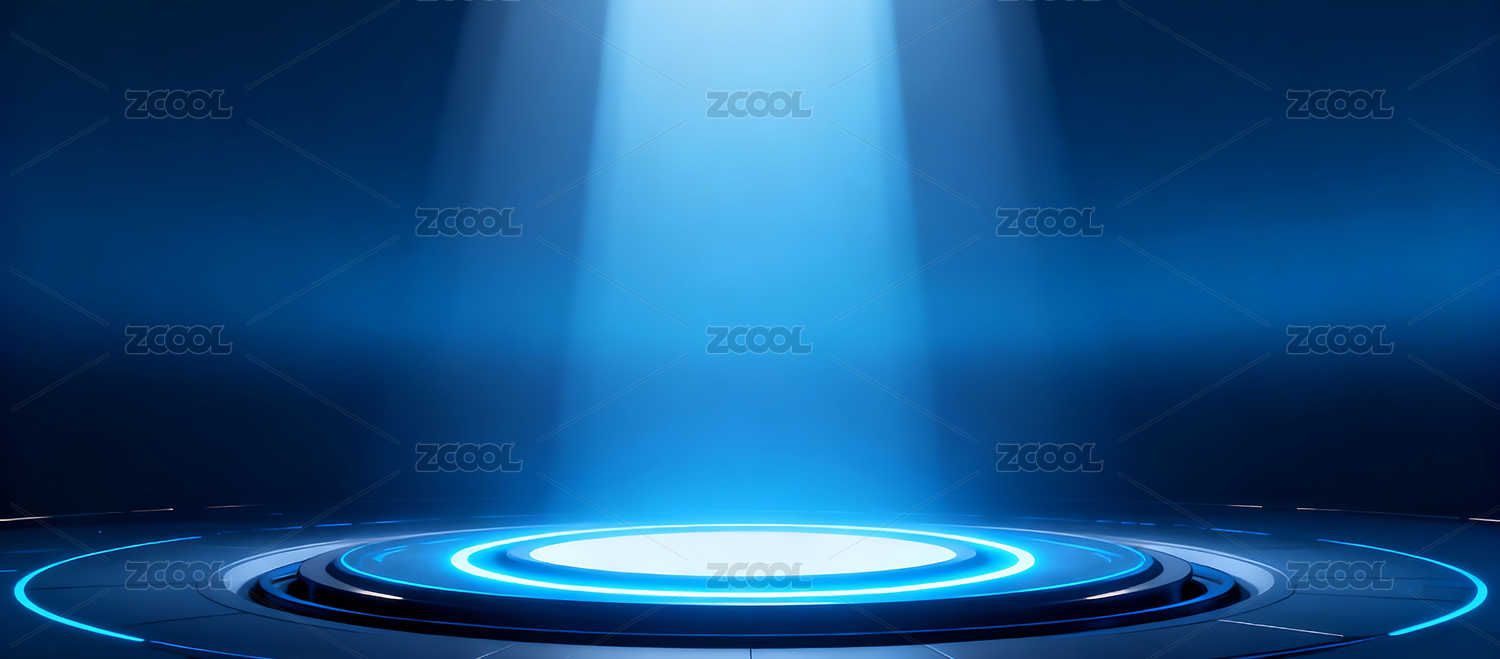 蓝色光圈环绕的未来舞台