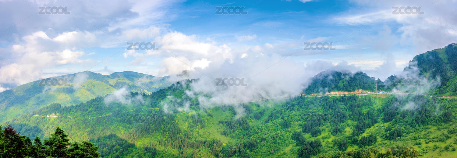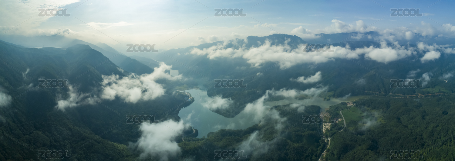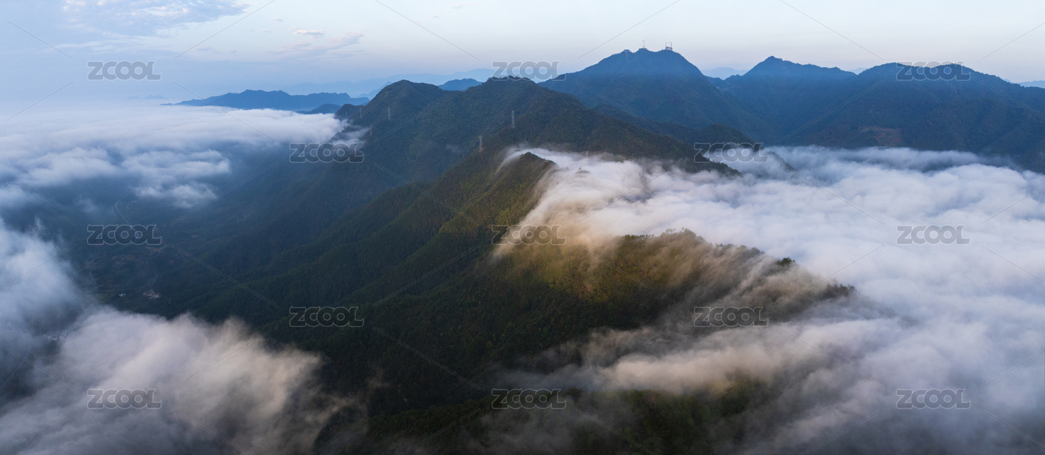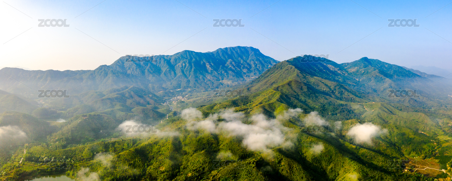 山脉,森林,绿色,云海,航拍,全景,自然,风景,大气,高山