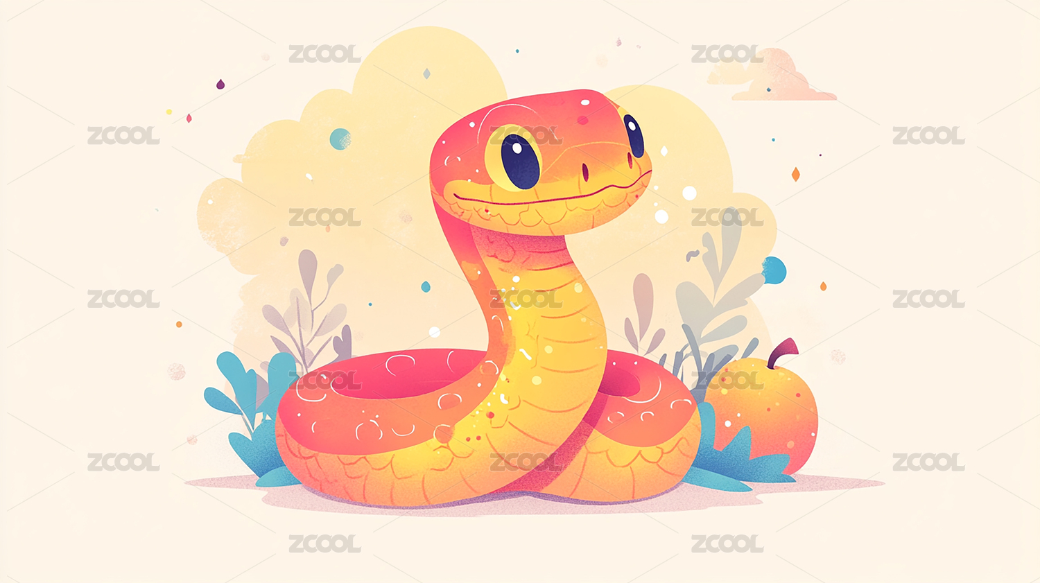 可爱儿童插画风格生肖蛇儿童涂鸦