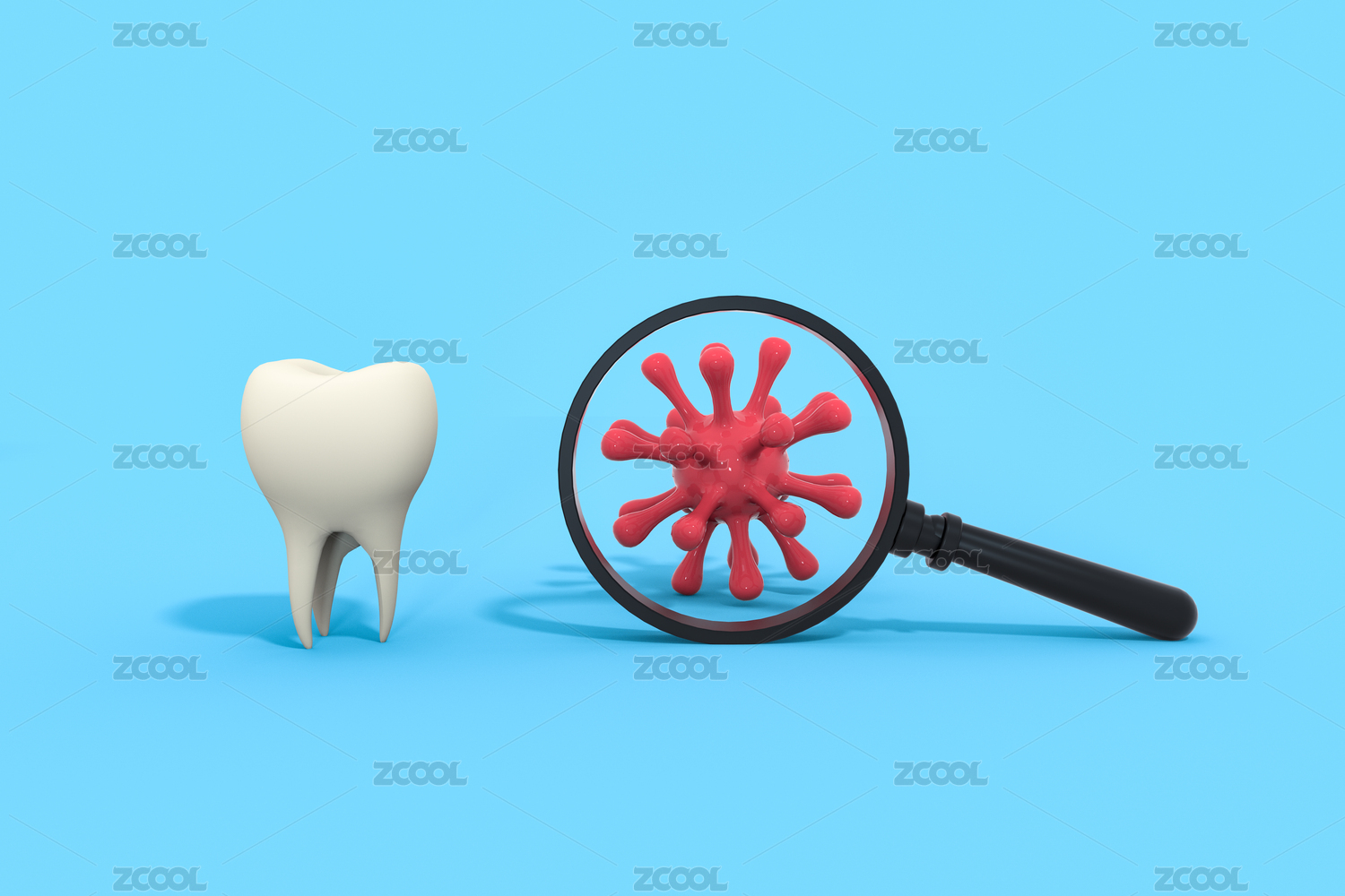 卡通牙齿与病毒3D渲染