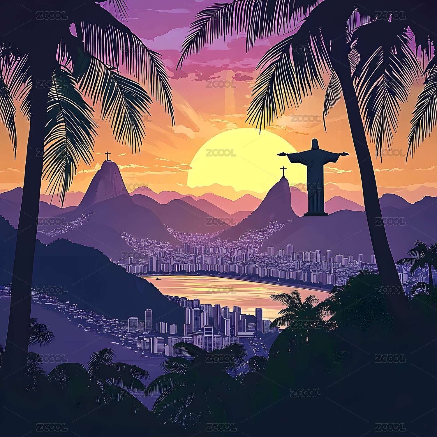知名,地标,插画,旅游,景点,热门,风光,AIGC202404,建筑,基督像