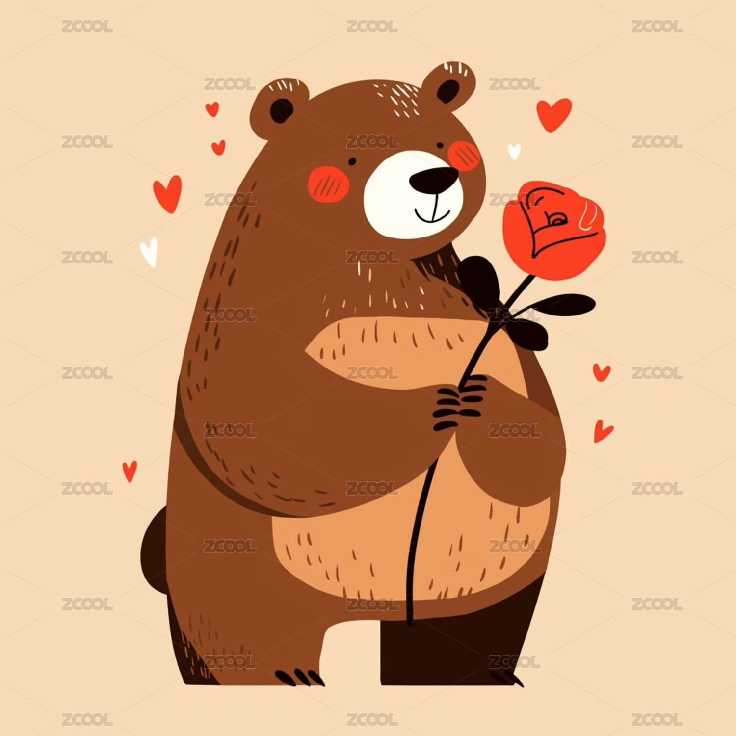 男孩穿卡通玩偶服小熊睡衣可爱动物卡片插画