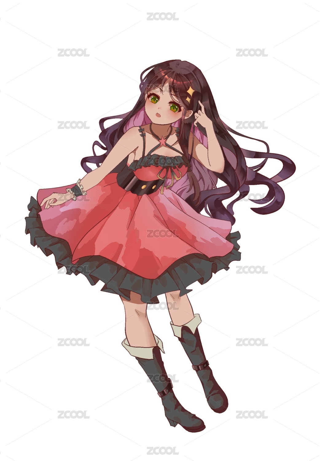 穿萝莉裙的粉色头发蓝天白云时光二次元少女