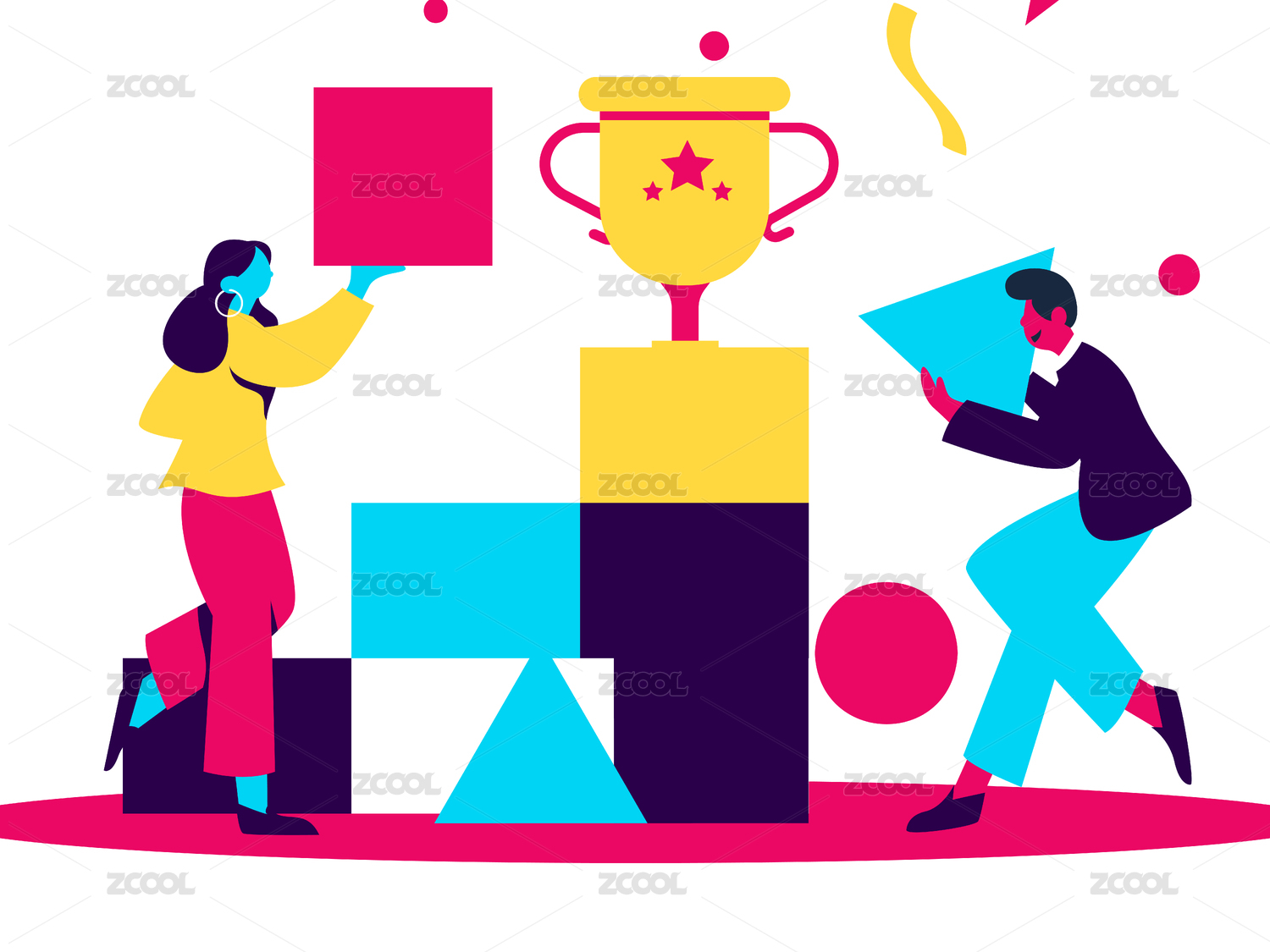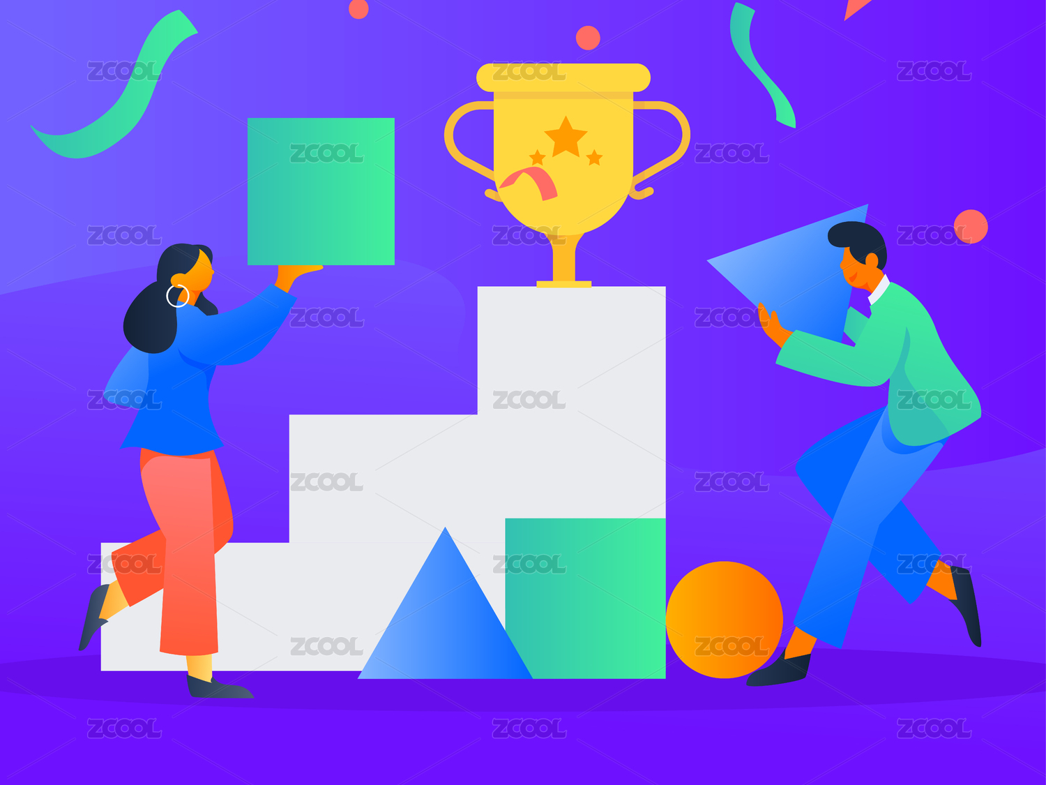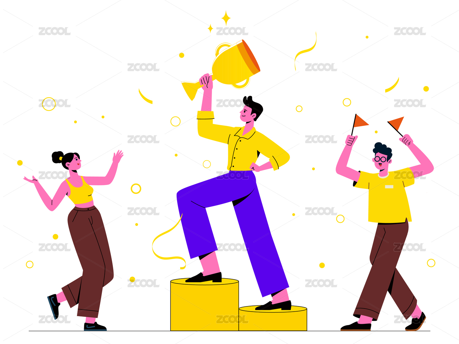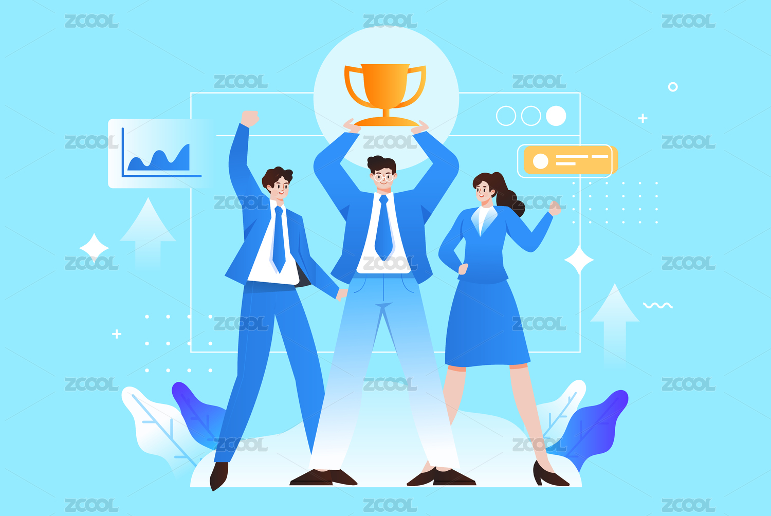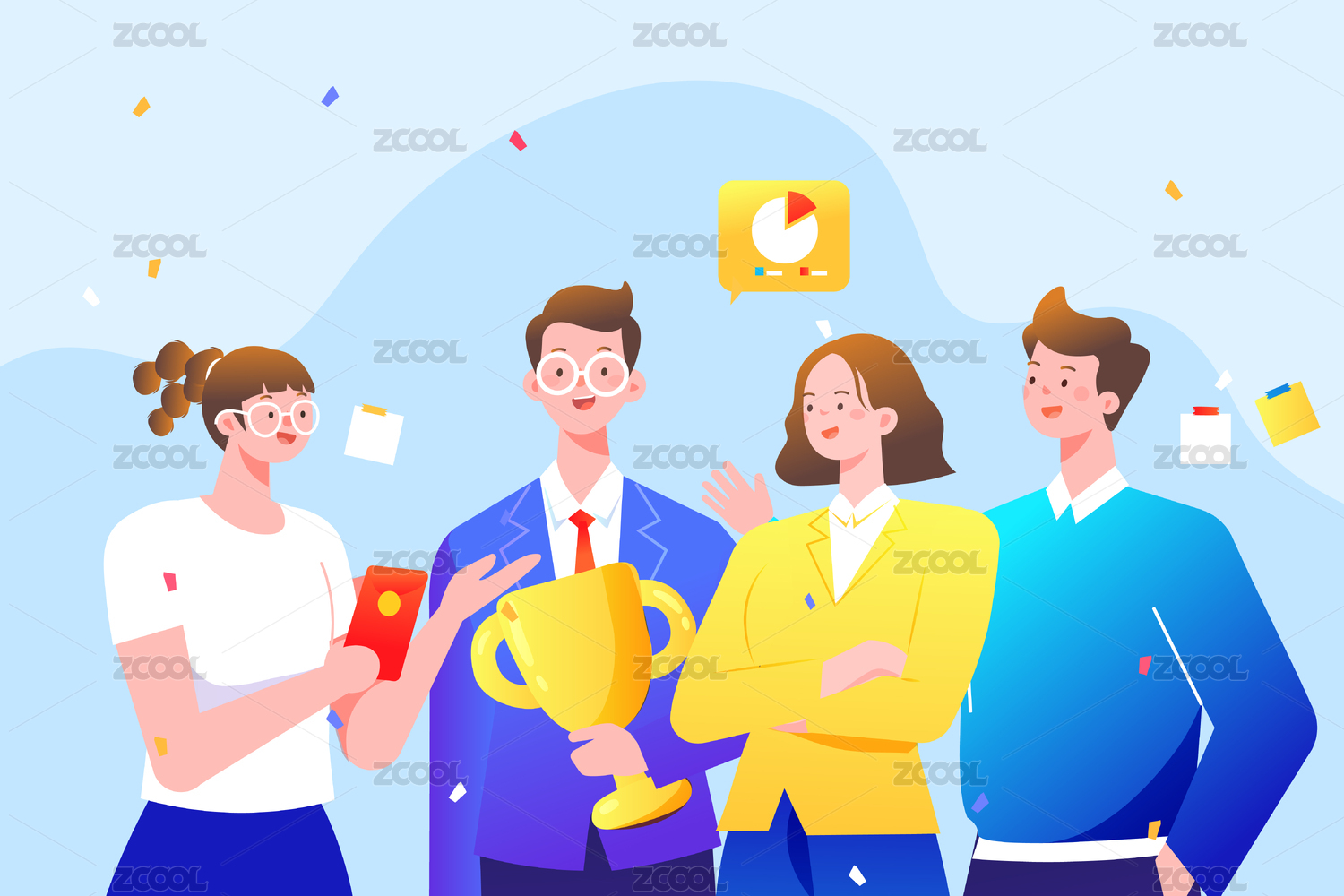 团队获得荣誉2, 矢量扁平人物场景创意概念插画