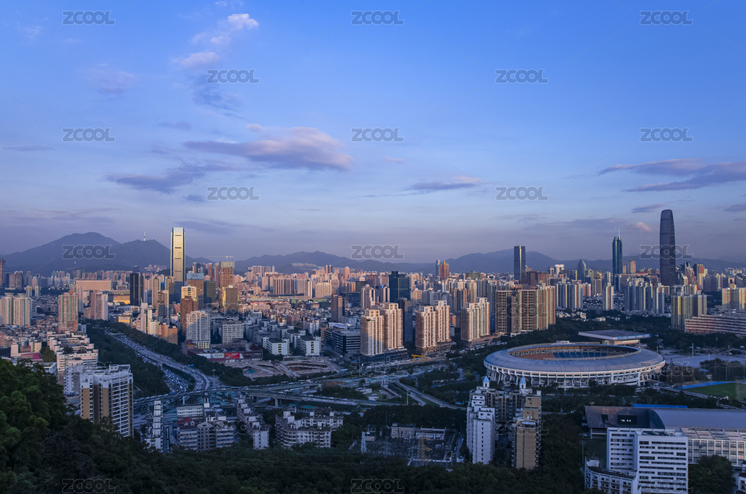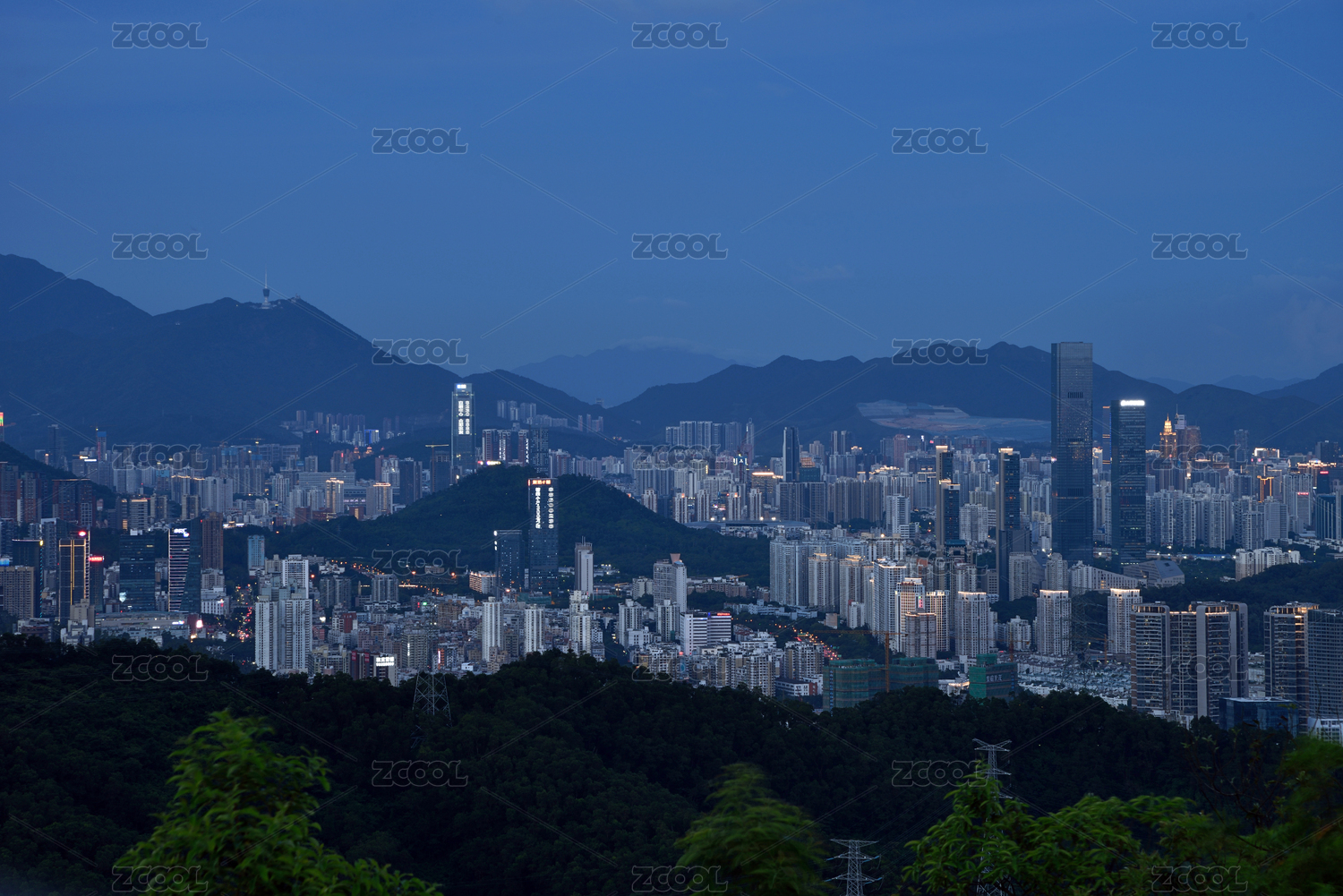 深圳南山公园望CBD摩天大楼繁华都市风光