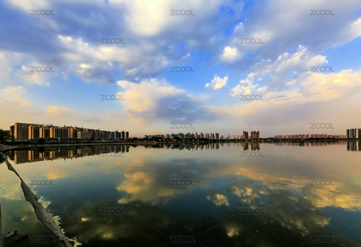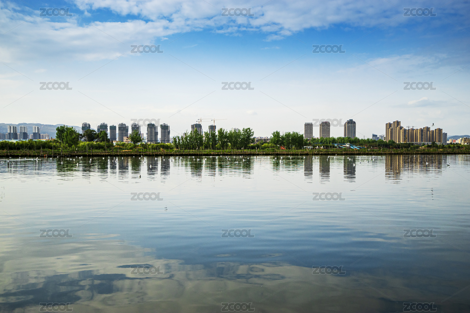 蓝天白云碧水生态园林城市内乡县城湍河城市