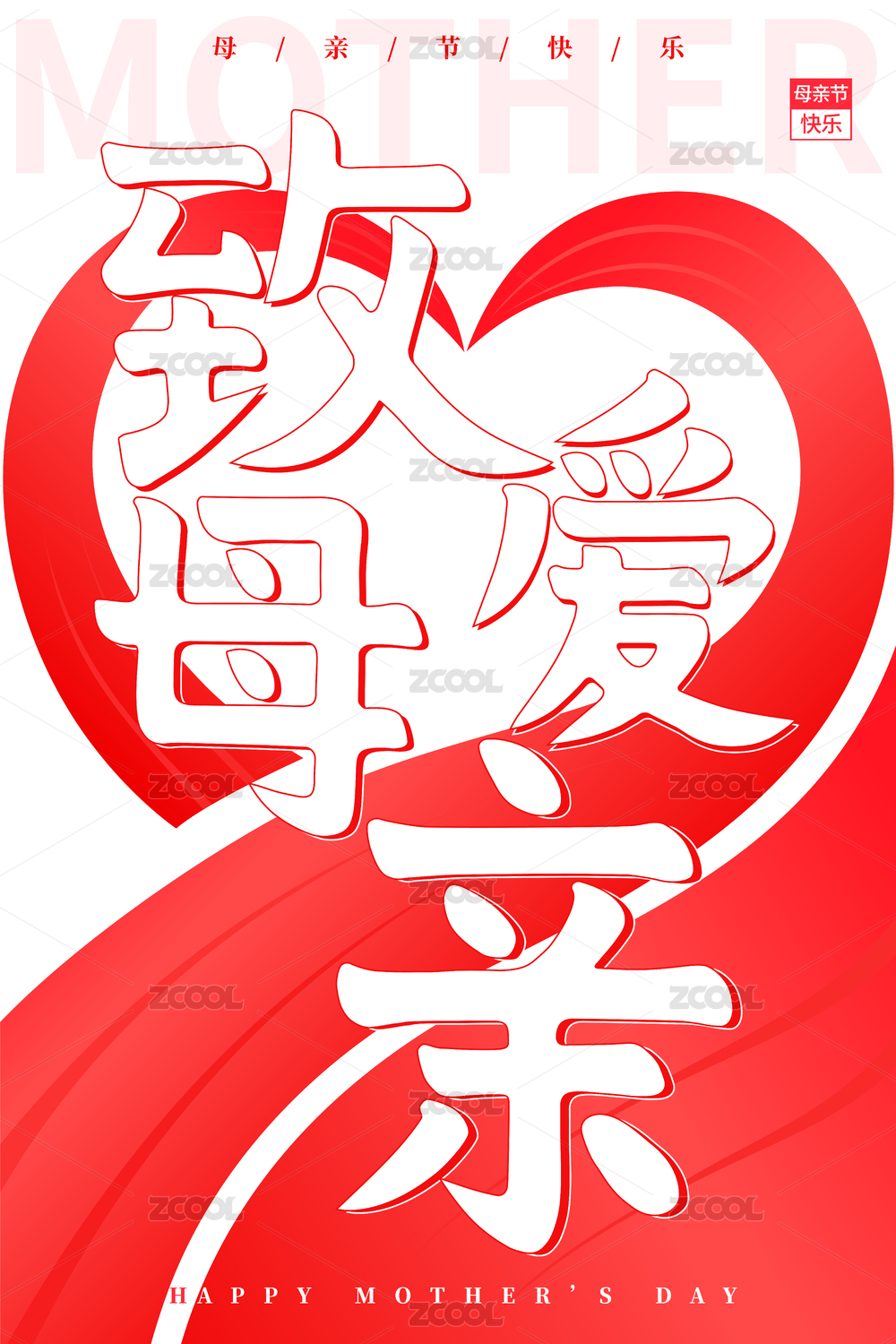 红色致爱母亲母亲节书法字海报