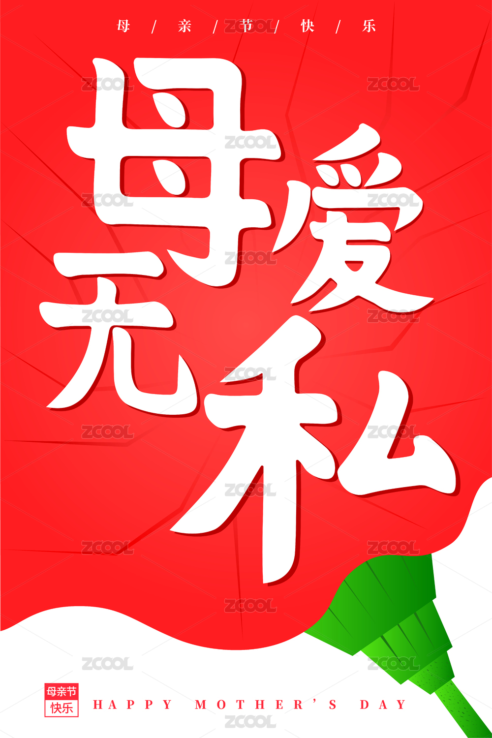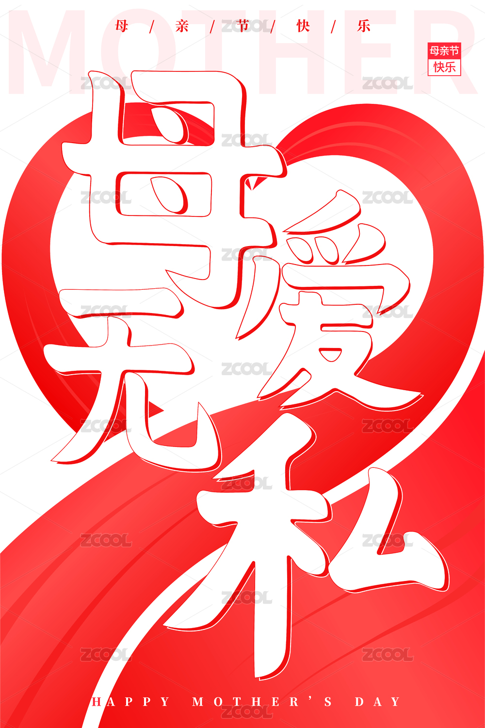红色母爱无私母亲节书法字海报