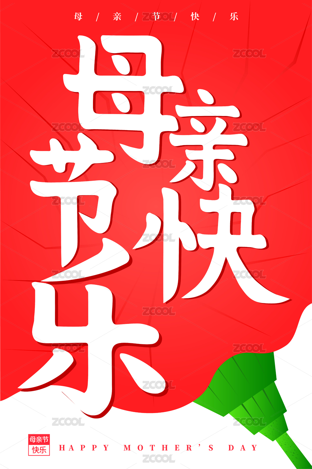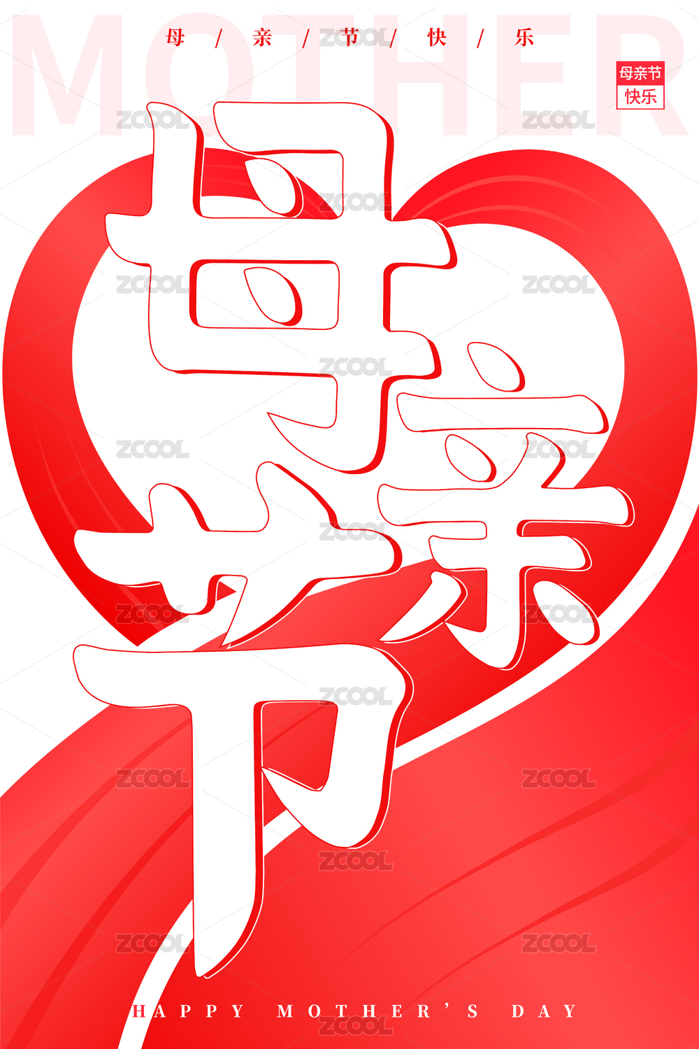 红色母亲节书法字海报