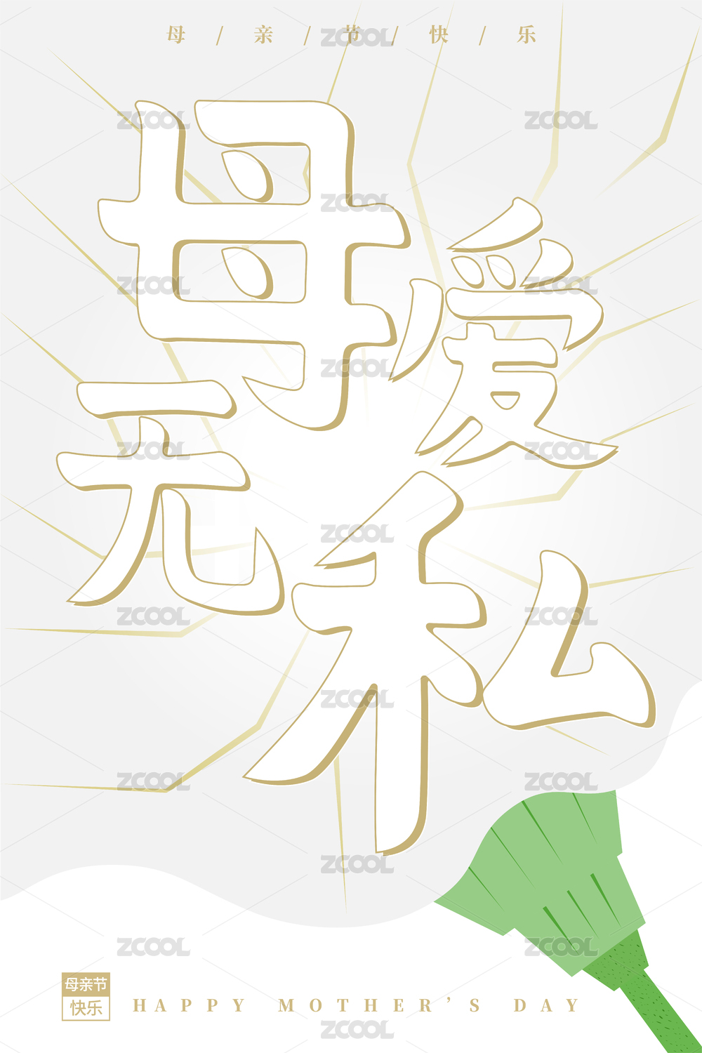 母爱无私母亲节白色简约书法字海报