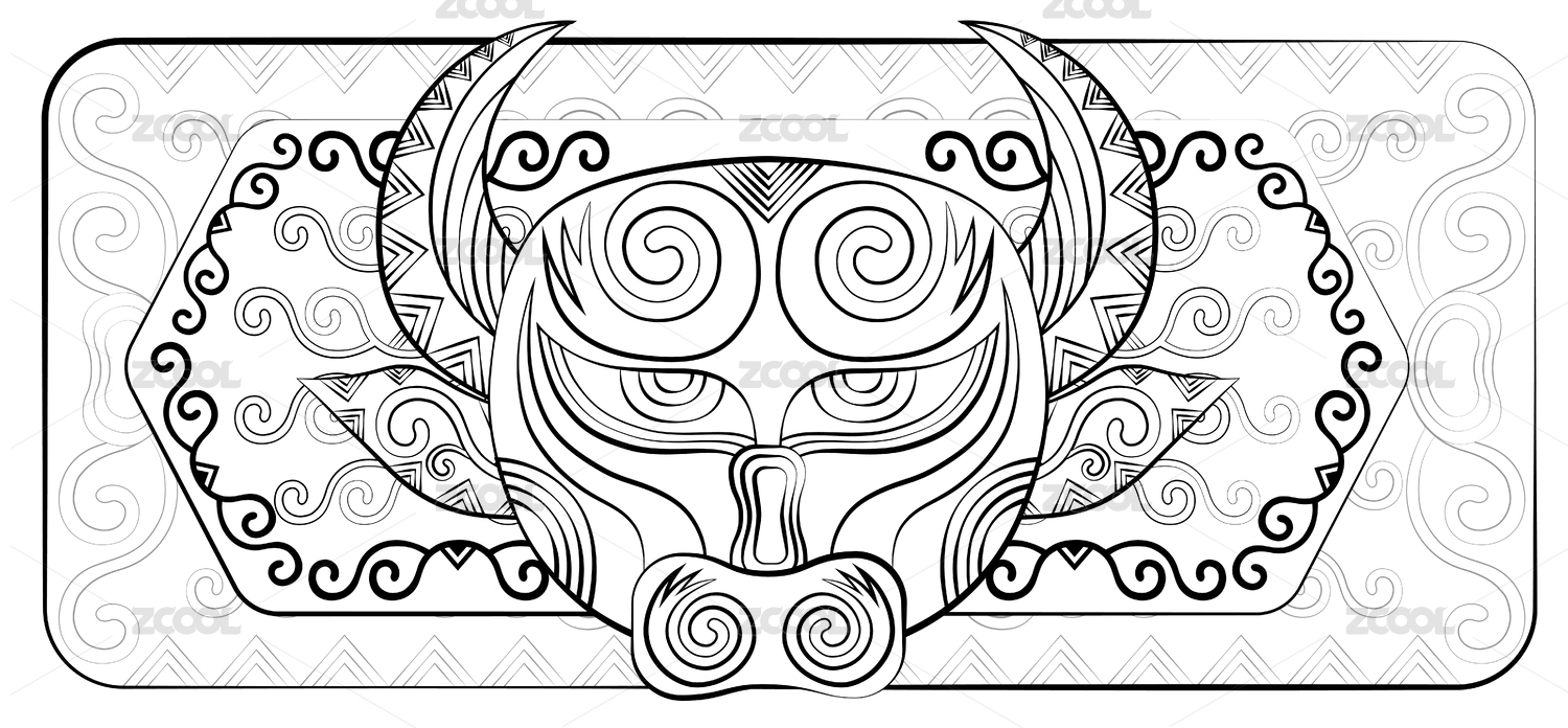 牛十二生肖黑白简约中国风印花图案矢量插画