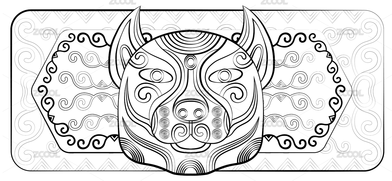 国潮猪卡通形象十二生肖线描潮流装饰纹样